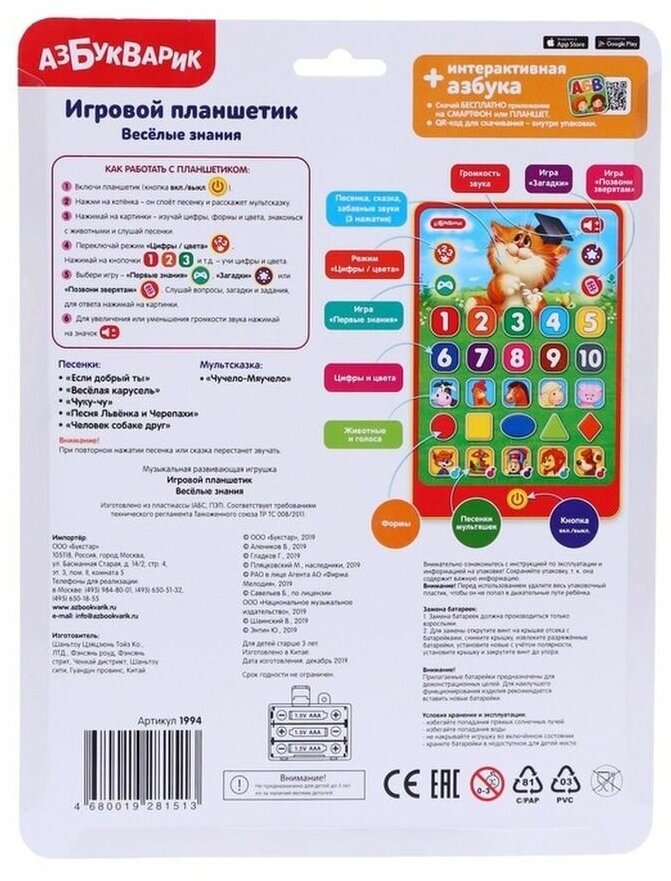 Игрушка развивающая Азбукварик планшетик веселые знания