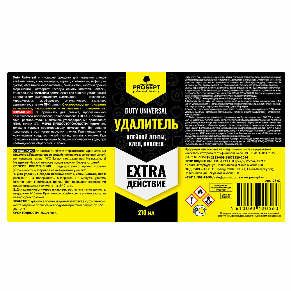Средство для удаления клея для удаления клея, наклеек, скотча PROSEPT Duty Universal