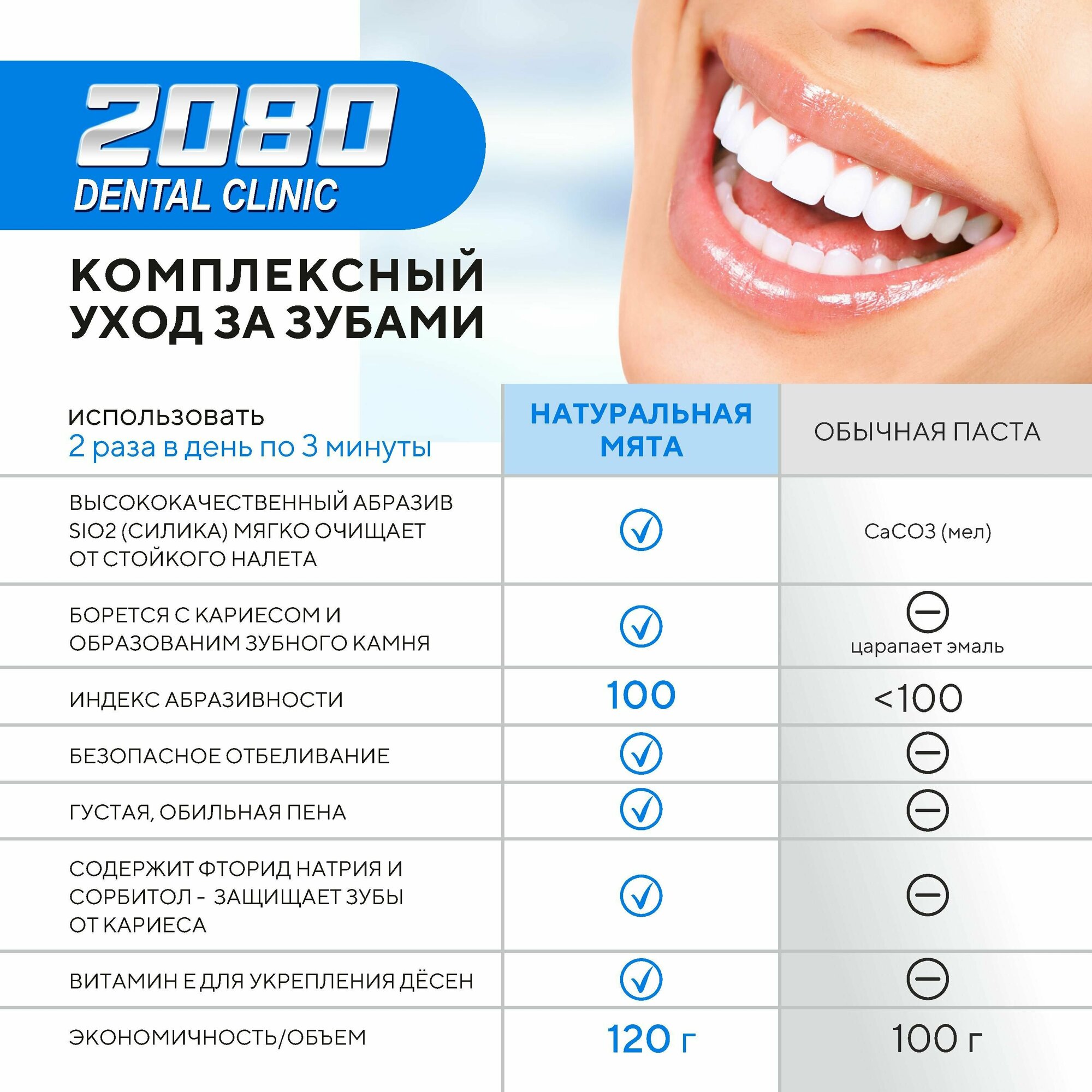 Dental Clinic 2080 Зубная паста Натуральная мята, 120 г, 2 шт