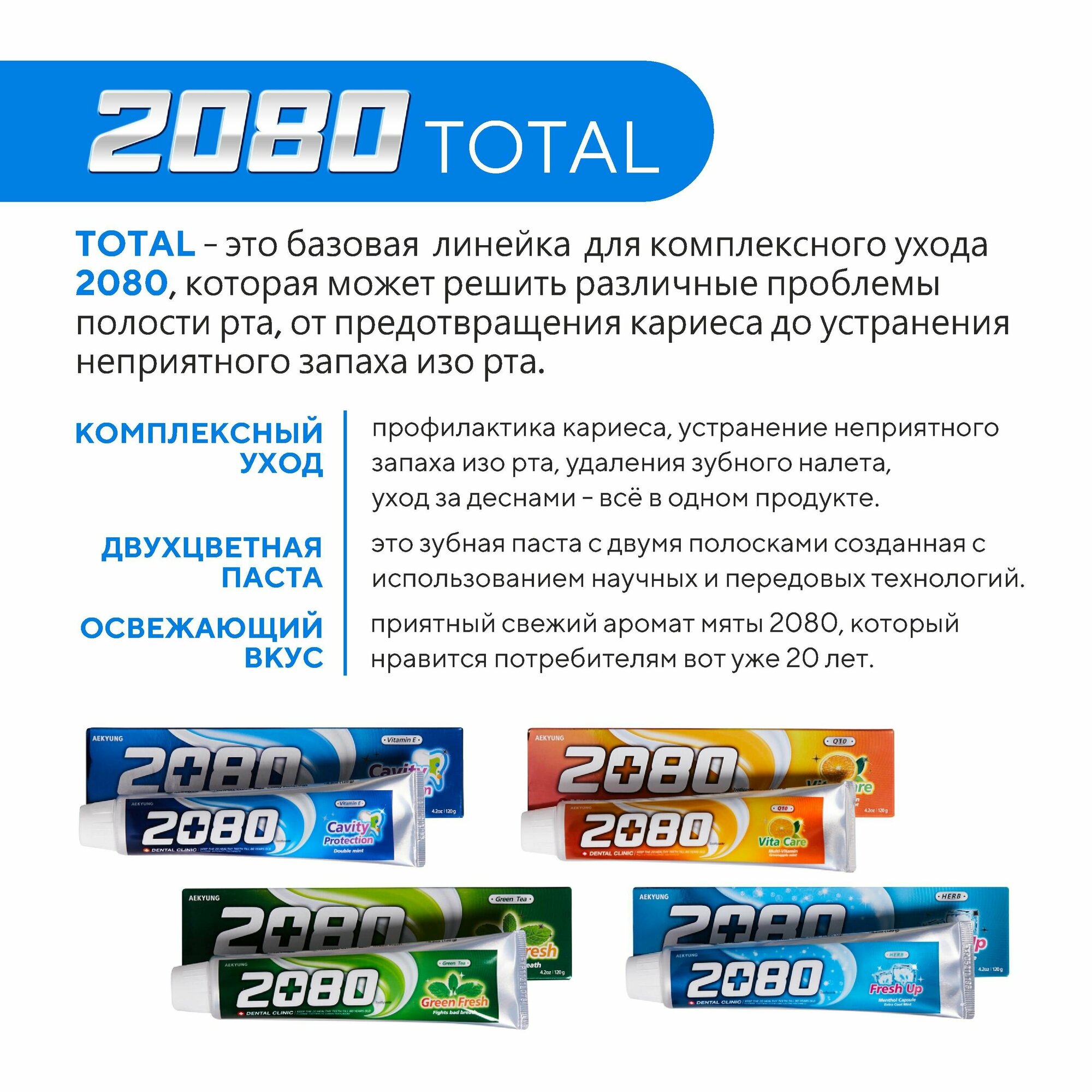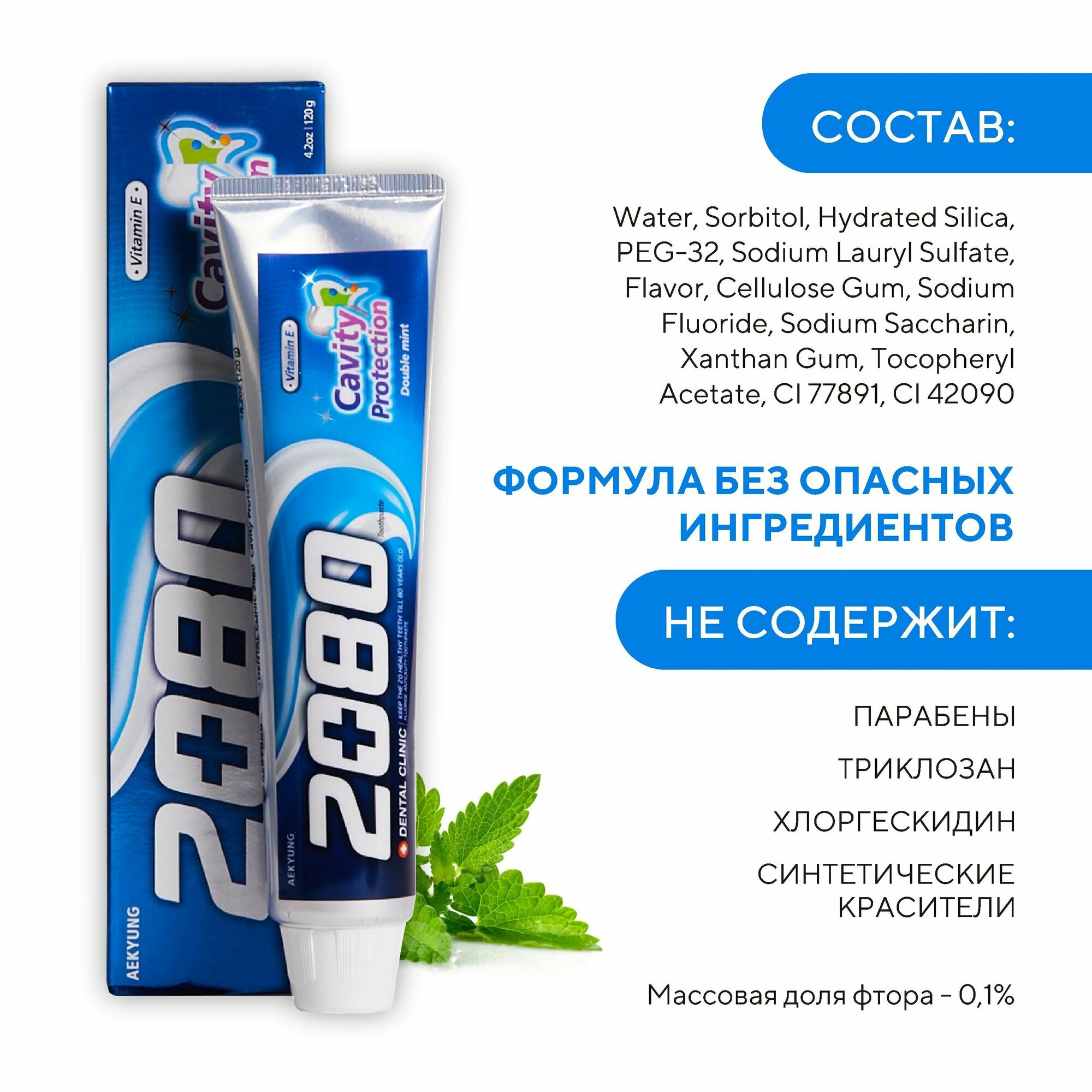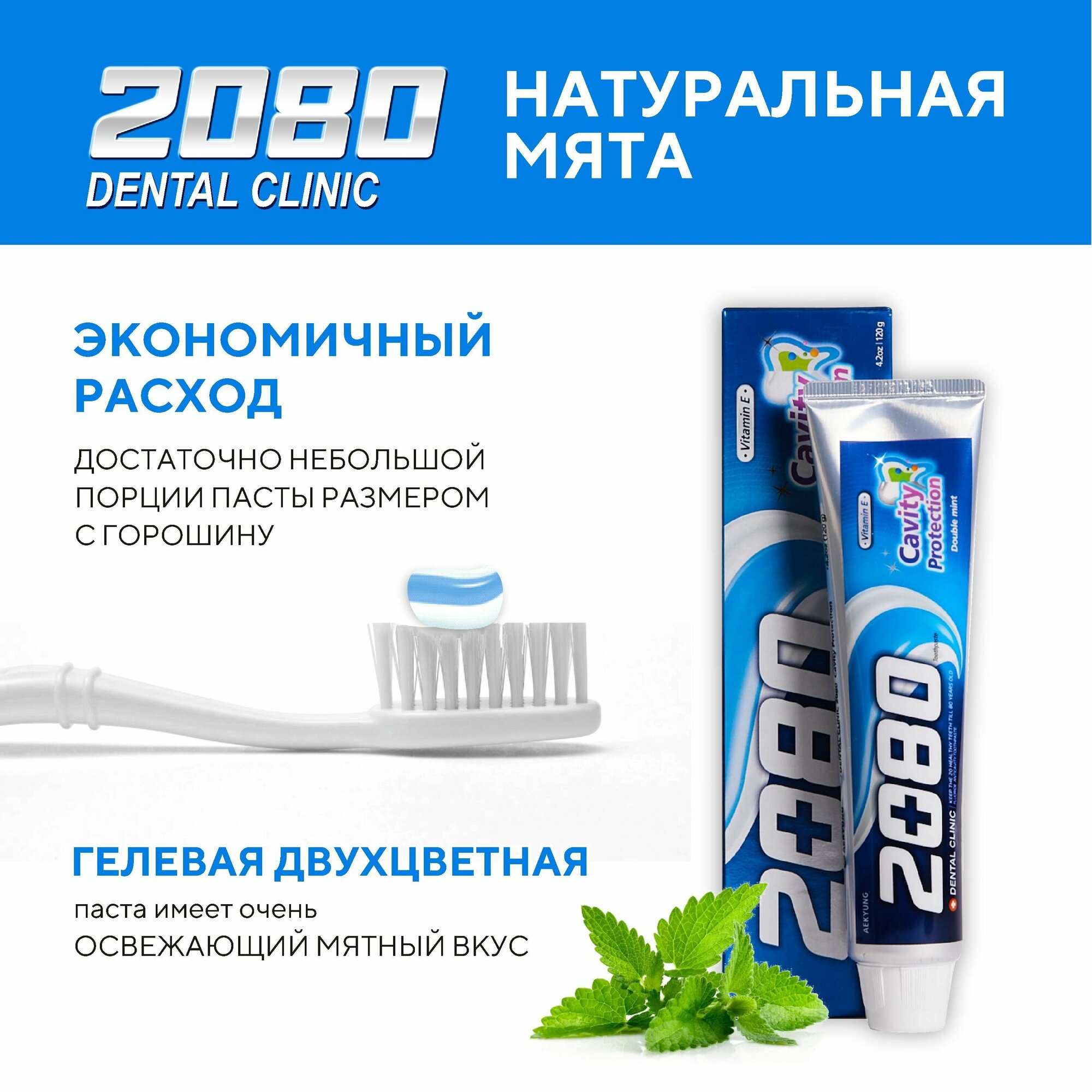 AEKYUNG Dental Clinic 2080 Зубная паста Натуральная мята (Cavity Protektion) 120 гр