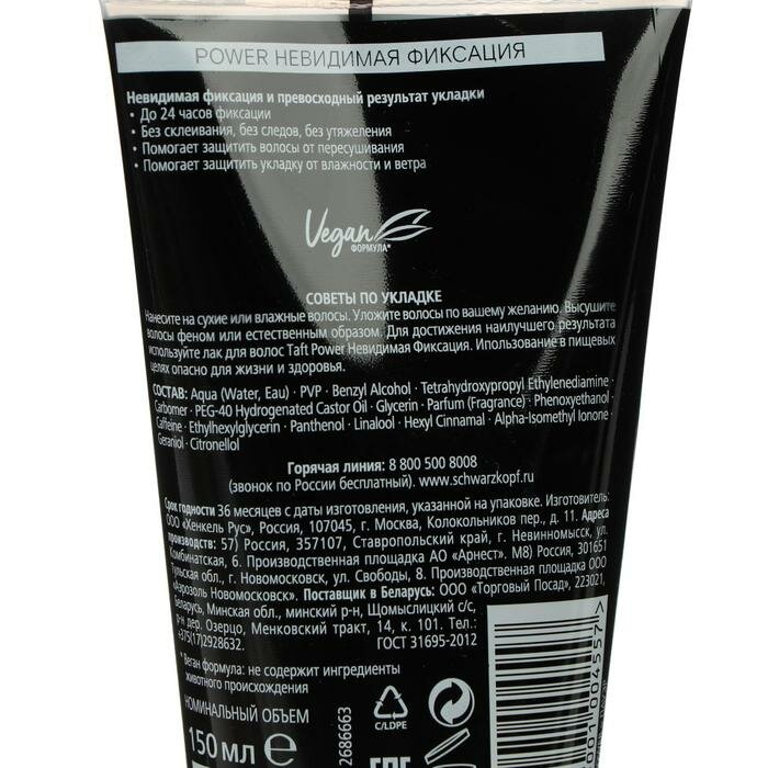 Taft Power гель для укладки Невидимая фиксация, 150 мл