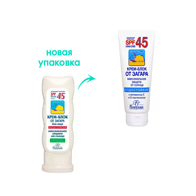 Floresan Крем-блок для лица от загара, водостойкий, SPF 45, 60 мл