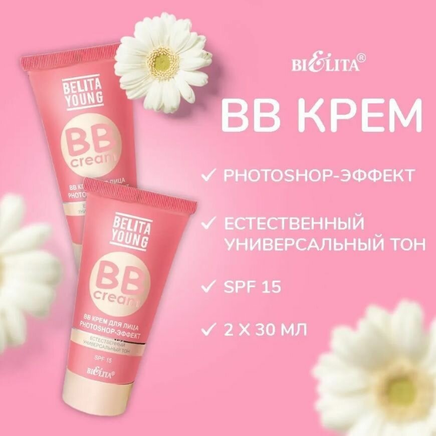 BB Крем для лица Belita, Young photoshop-эффект, 30 мл, SPF 15, крем тональный, BB cream, естественный универсальный тон 2шт.