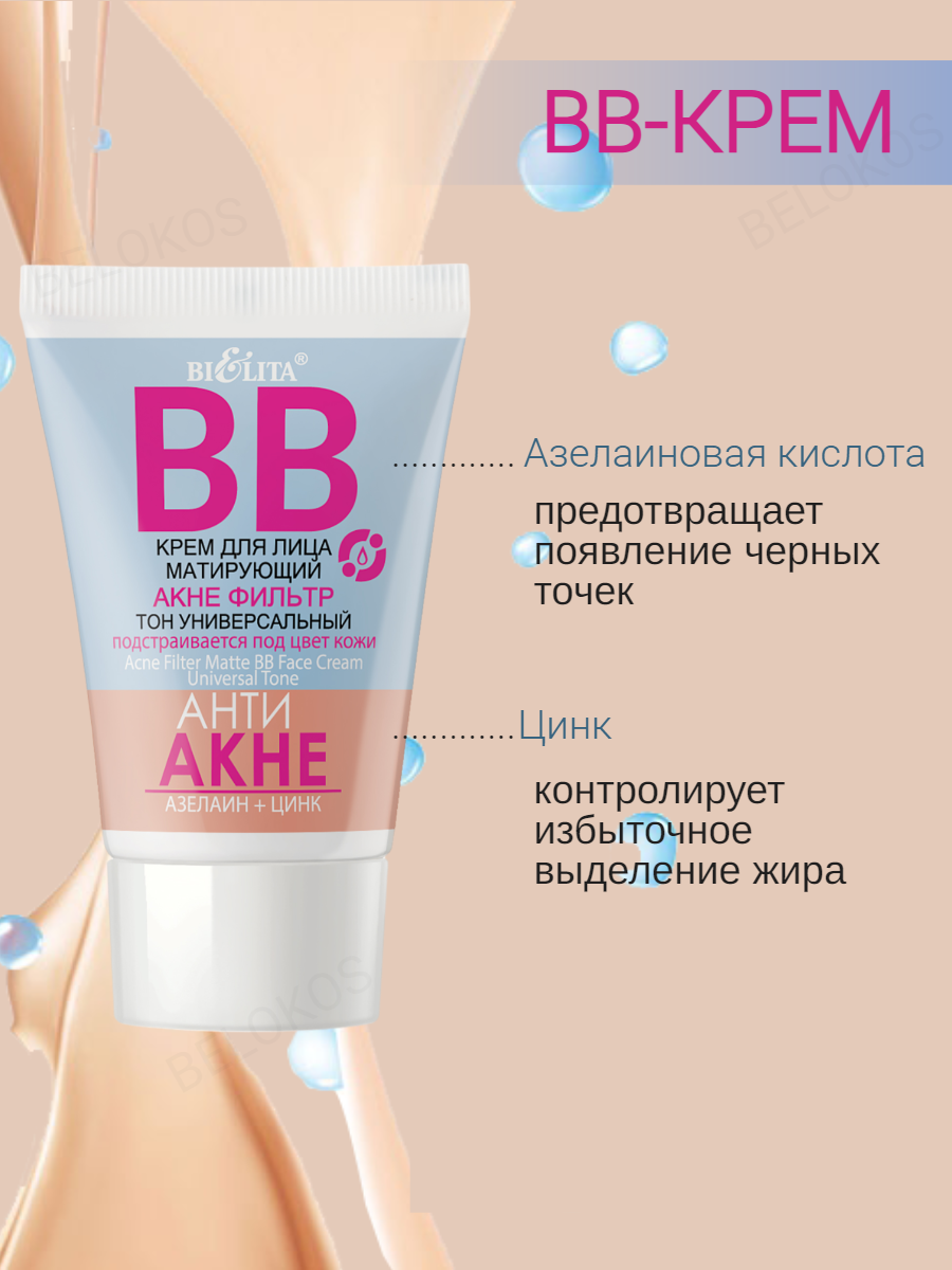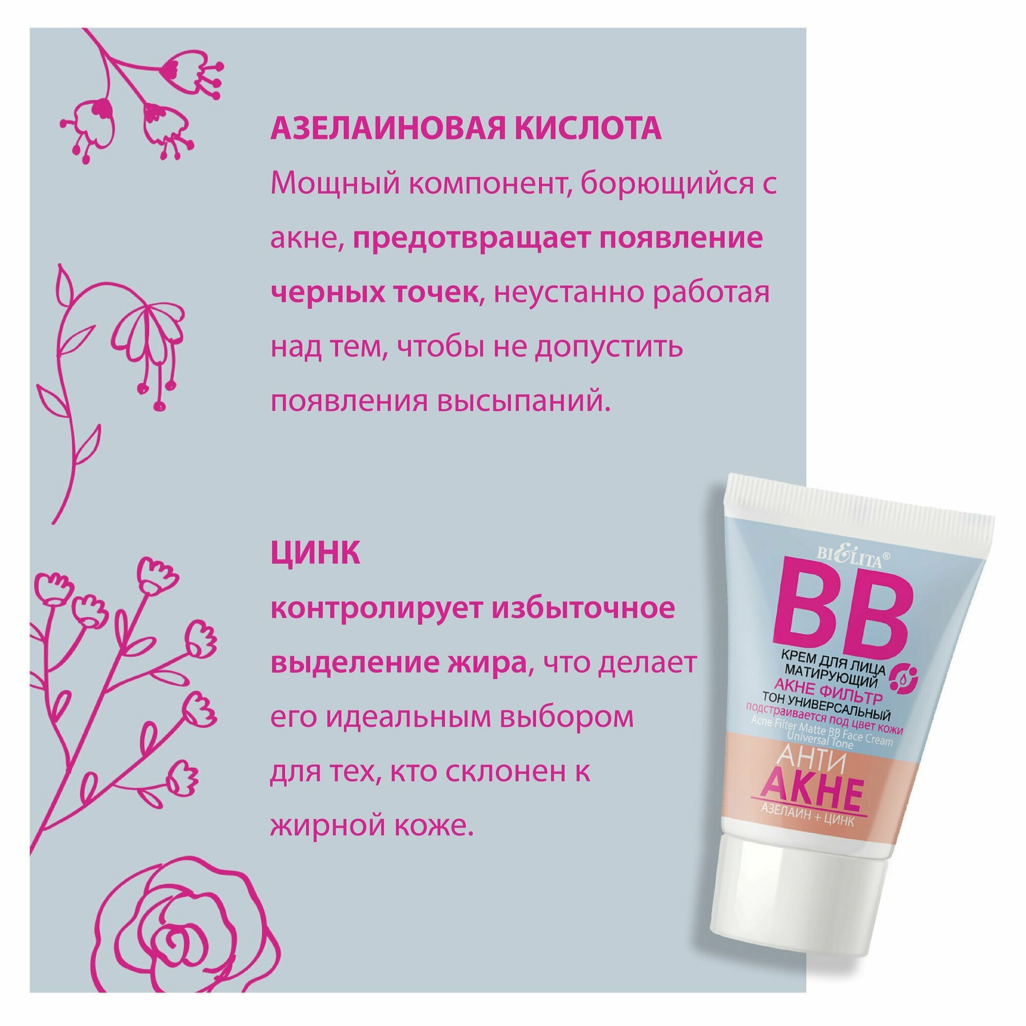 Белита BB крем анти акне для лица матирующий "Акне фильтр", тон универсальный
