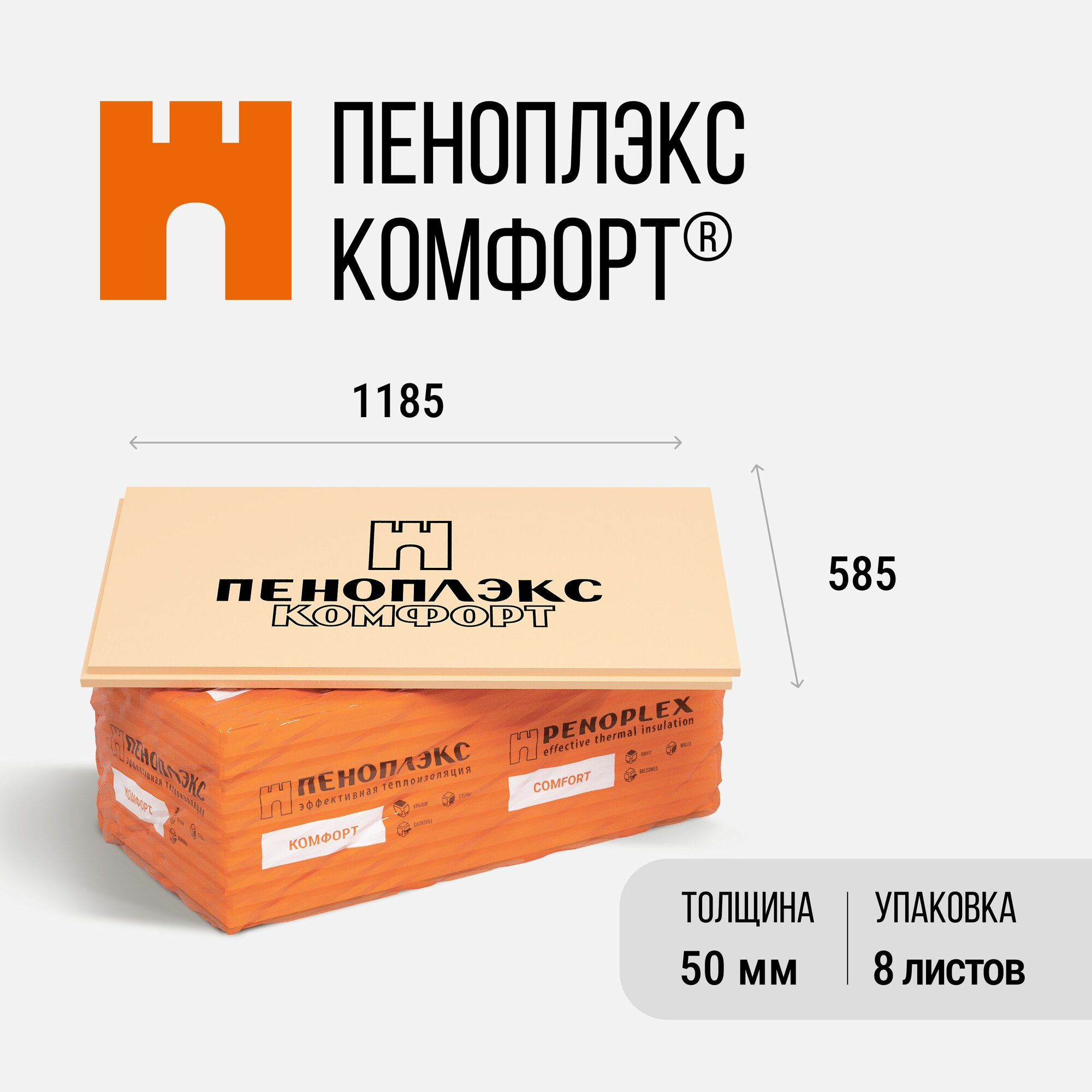 Пеноплэкс 50мм комфорт 50х585х1185 (4 плиты) 2,76 м2 универсальный утеплитель из экструзионного пенополистирола