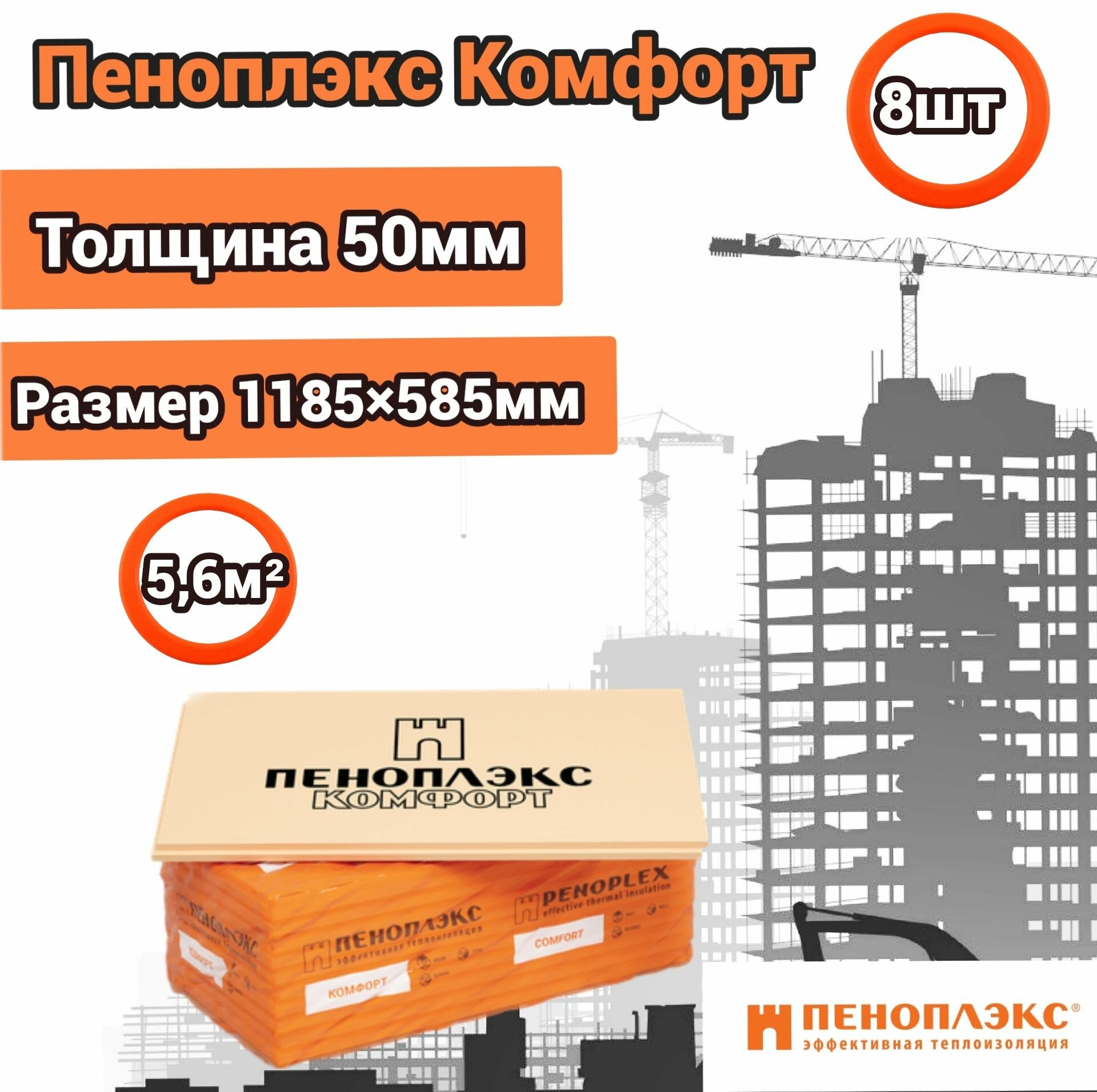 Пеноплэкс Комфорт 50 мм (56 плит/8 упаковок/38.8 м2), утеплитель для стен, крыши, пола, экструзионный пенополистирол
