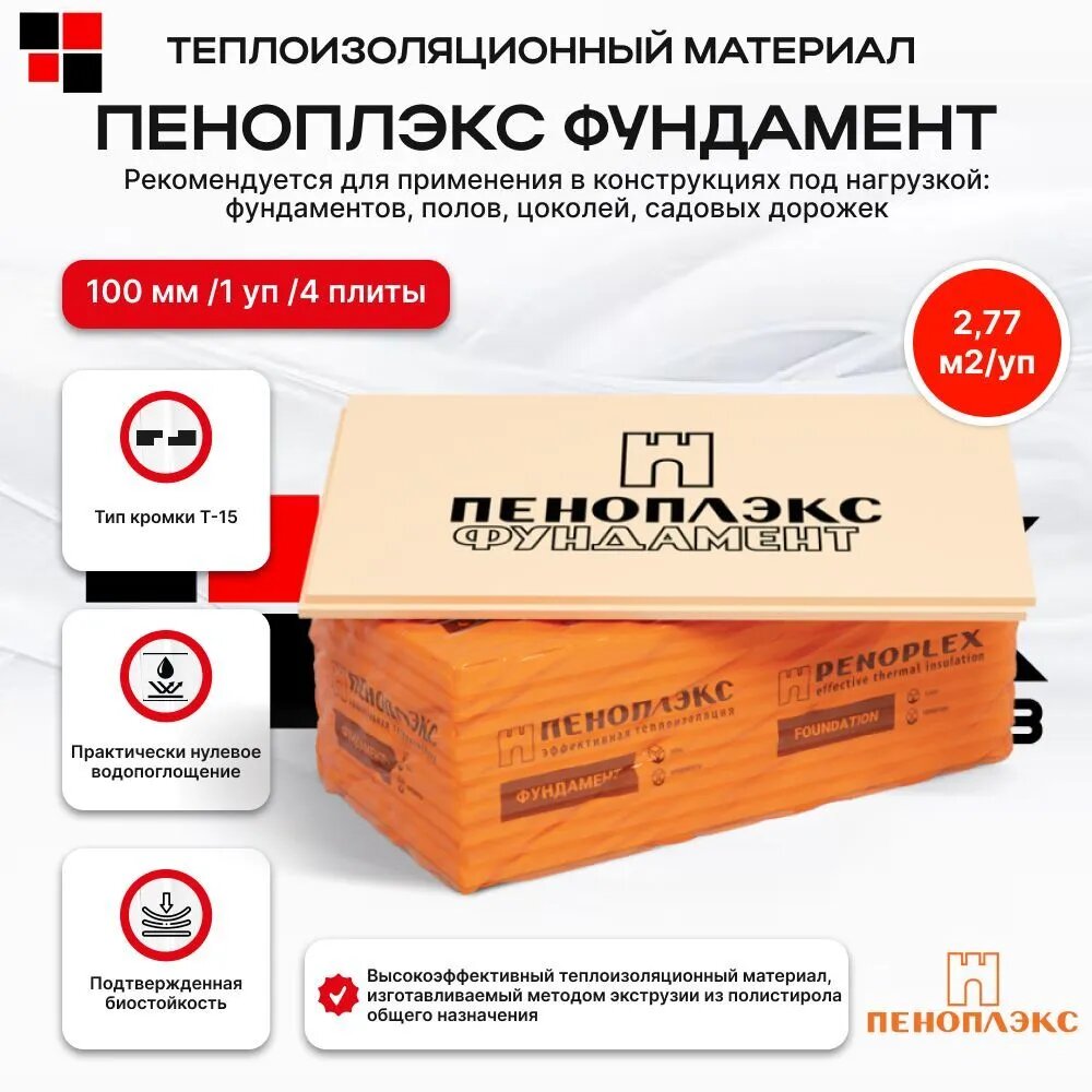 Пеноплекс Фундамент 1185х585х100мм XPS (4шт=2,77м2=0,277м3) / пеноплэкс Фундамент экструдированный пенополистирол 1185х585х100мм (упак. 4шт=2,77м2=0,2