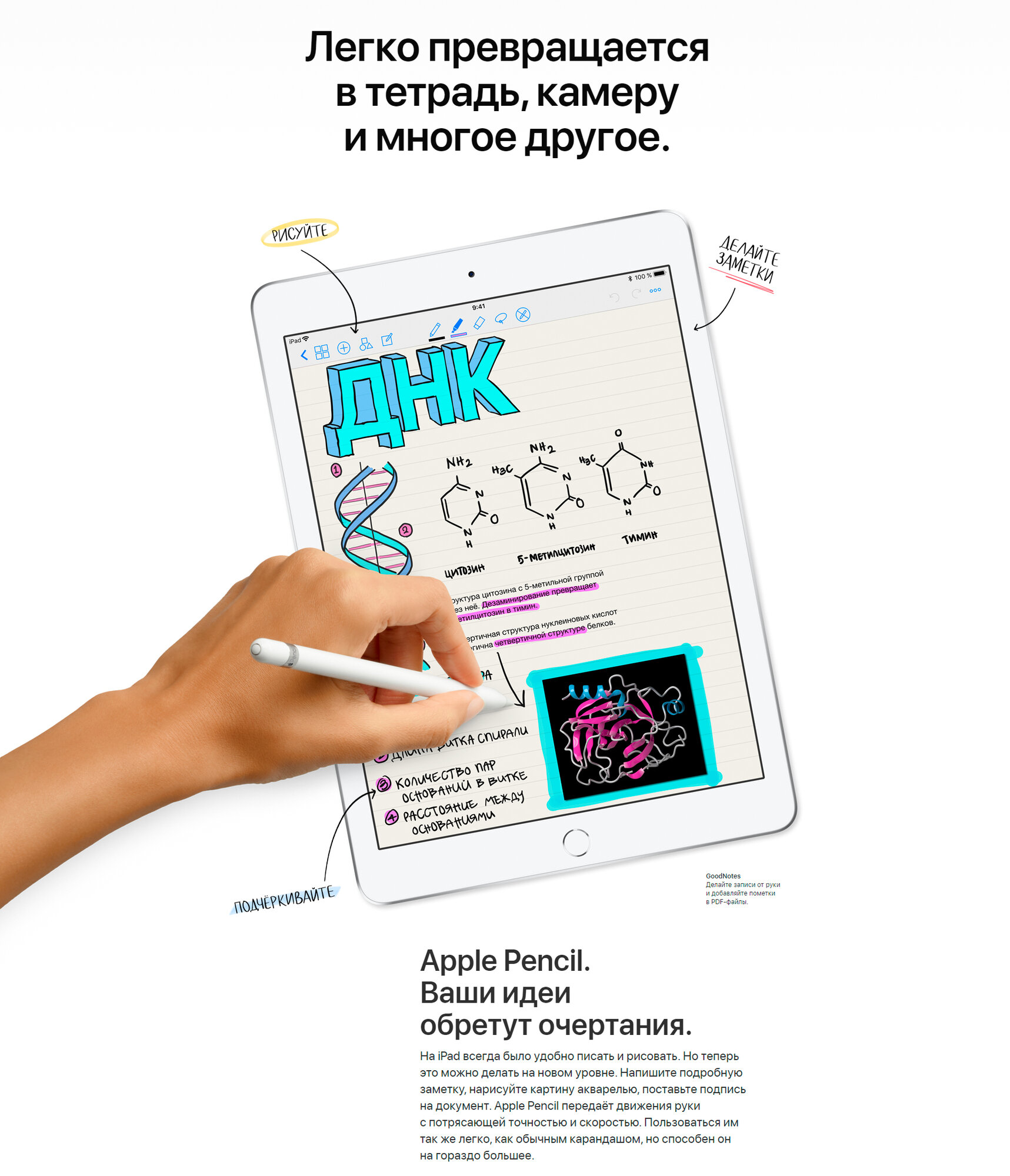 | Отзыв: | Купил для рисования вместе с apple pencil. Ощущения - просто пушка, рисовать реально в разы удобнее чем графический планшет + компьютер, как карандашом по бумаге. По такой цене конкурентов нет. Карандаш заряжается от самого планшета за 20 минут и держит заряд часов 8. Приложения для этого у айпэда самые лучшие.