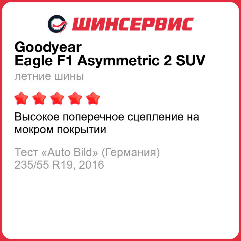 СохранитьАвтошина Goodyear Eagle F1 Asymmetric 2 SUV 285/45 R20 112Y интересное: