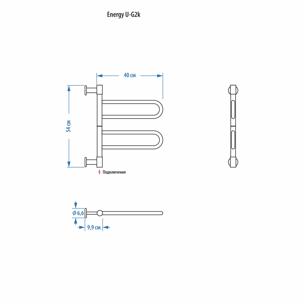 Электрический полотенцесушитель Energy U - G3K поворотный цвет хром, скрытое/наружное подключение