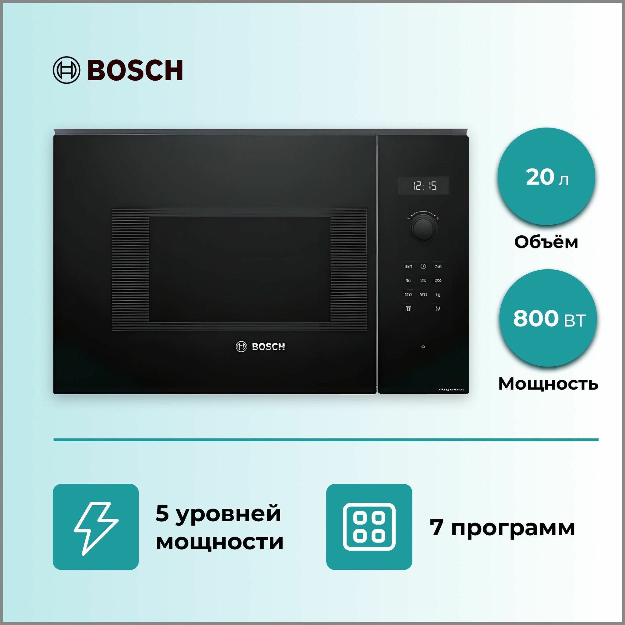 Купить Микроволновая печь встраиваемая Bosch BFL524MB0, 20 л, 800 Вт, автоматическая разморозка, дисплей