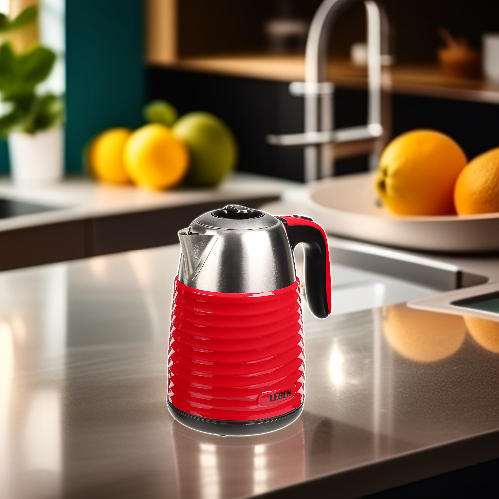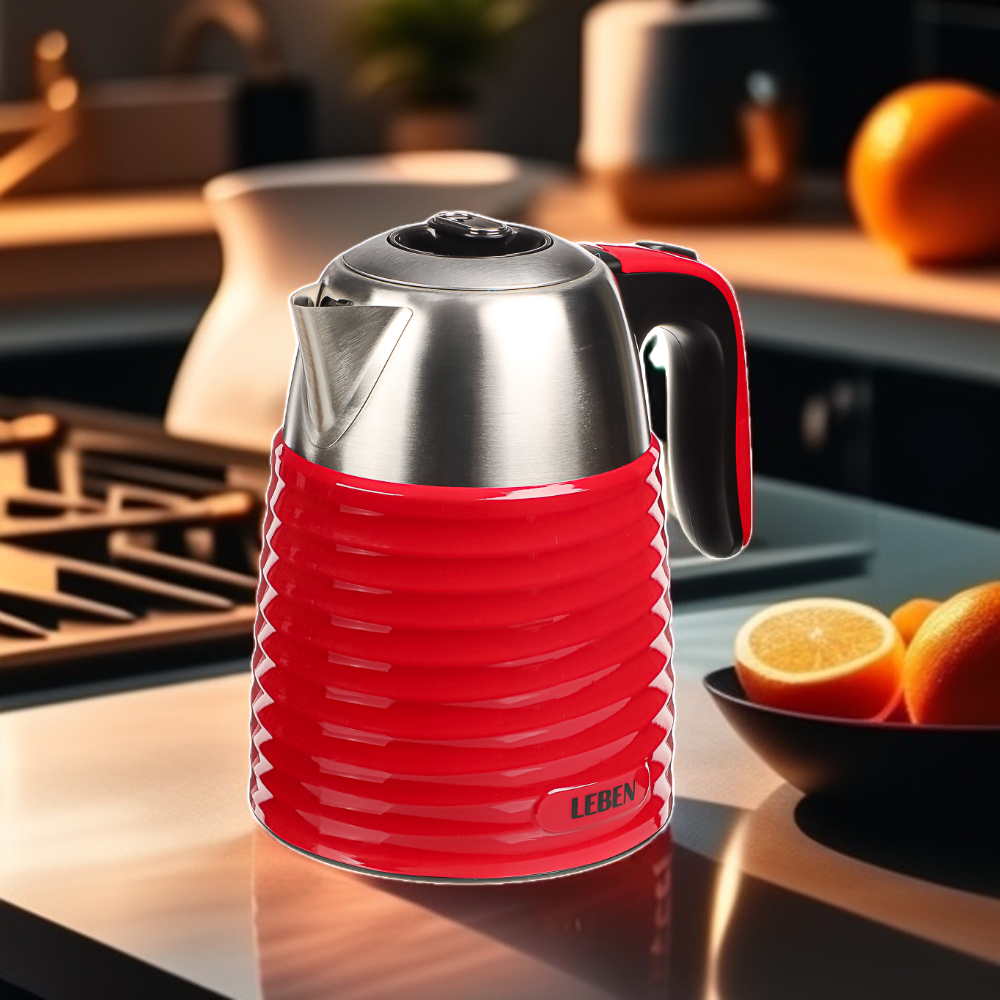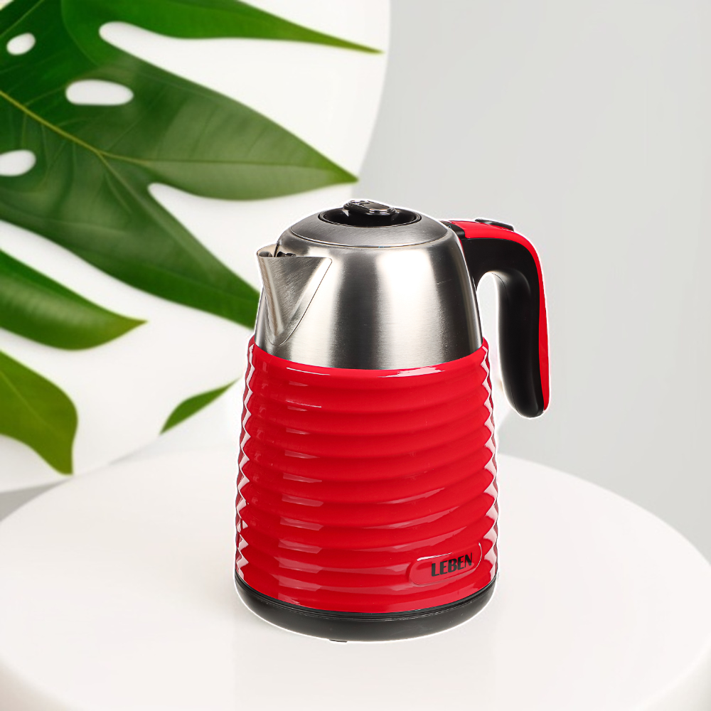 LEBEN Чайник электрический 1,7 л., 2200 Вт., металл-пластик ребристый, бордо