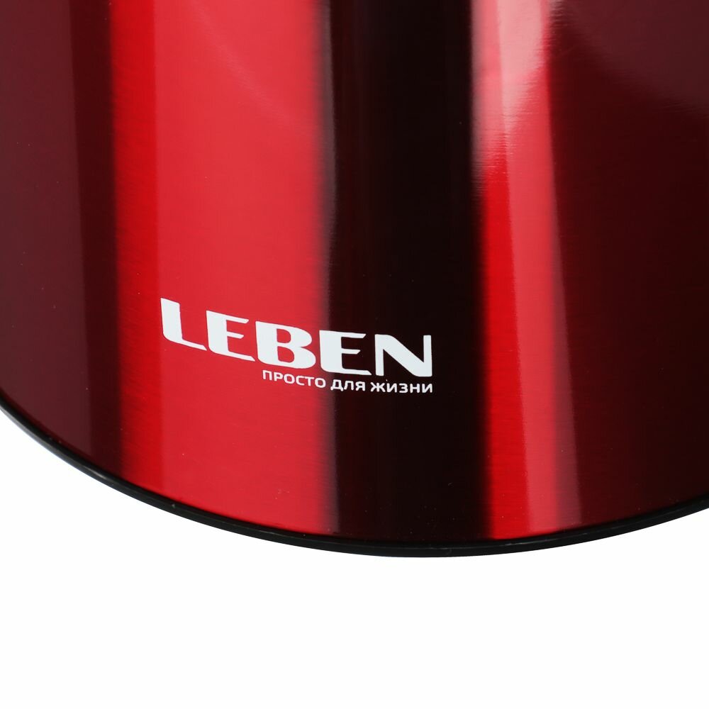 LEBEN Чайник электрический 1,7 л., 2200 Вт., металл-пластик ребристый, бордо
