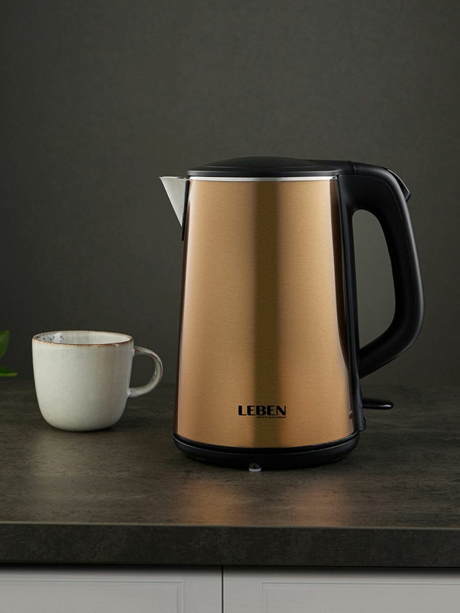 СохранитьЧайник электрический 1,8 л LEBEN, 1800 Вт, металл, тройные стенки, бесшовная колба интересное: