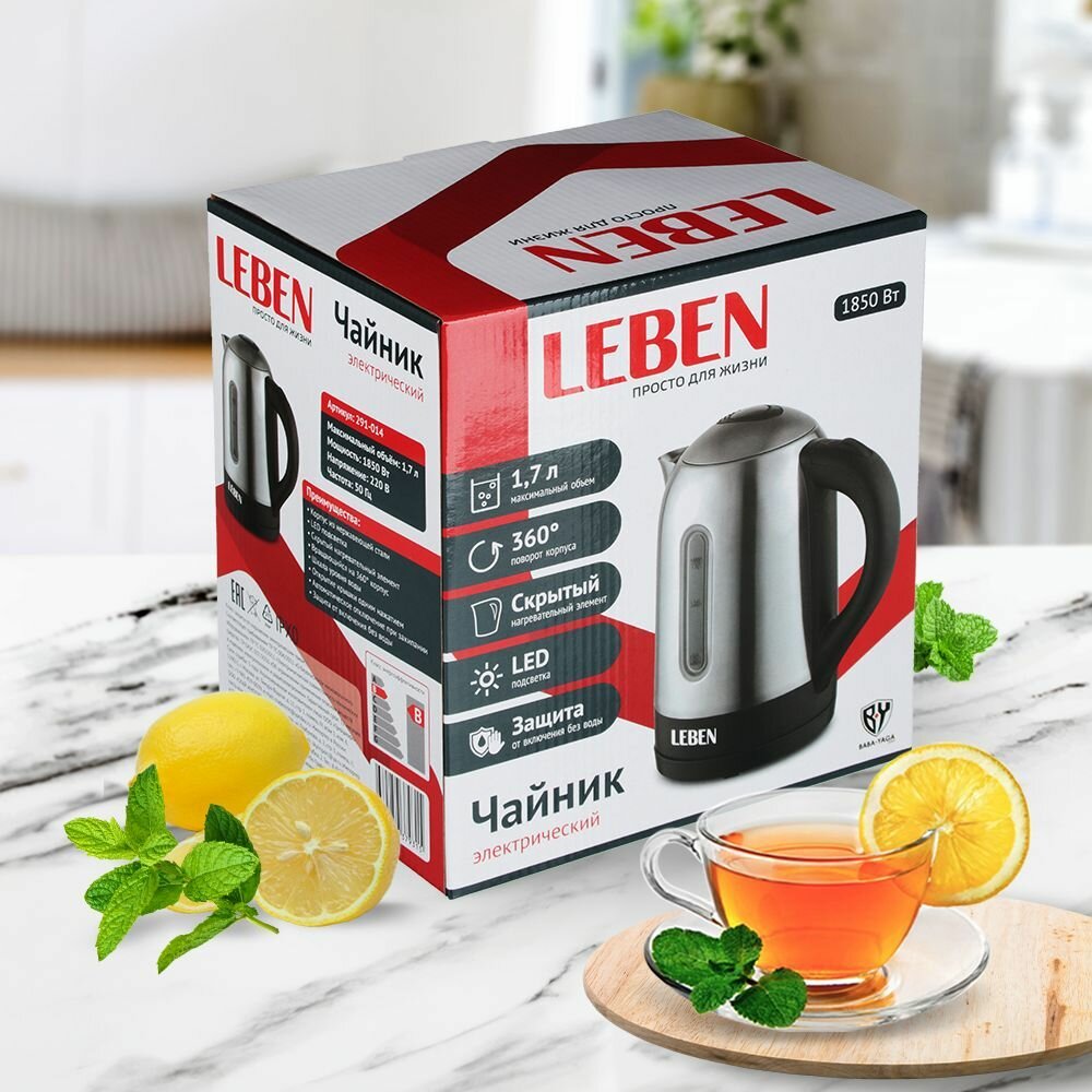 Купить Чайник электрический 1,7 л LEBEN, 1850 Вт, нержавеющая сталь