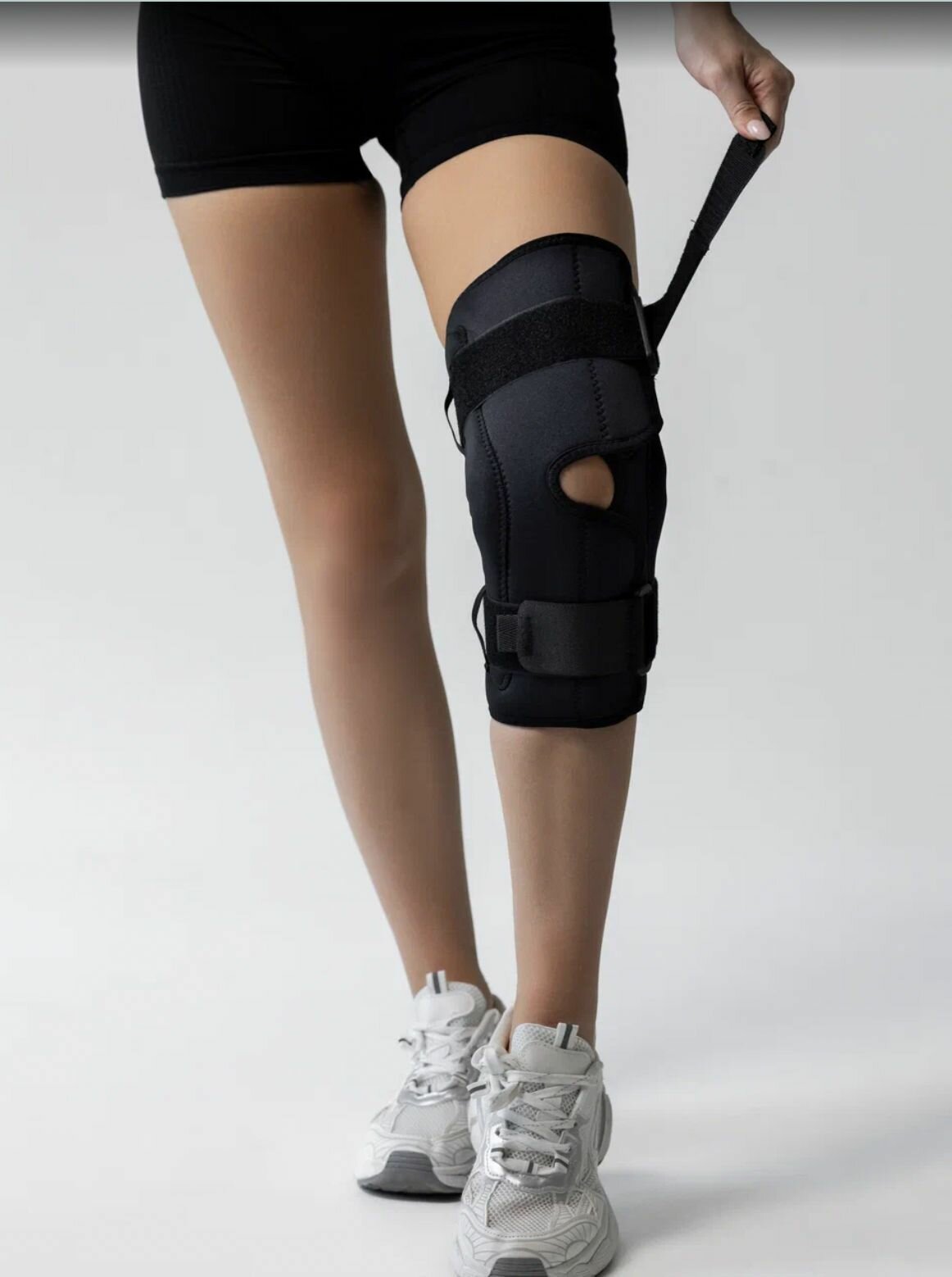 Ортез на коленный сустав с полицентрическими шарнирами, разъёмный, чёрный, размер L