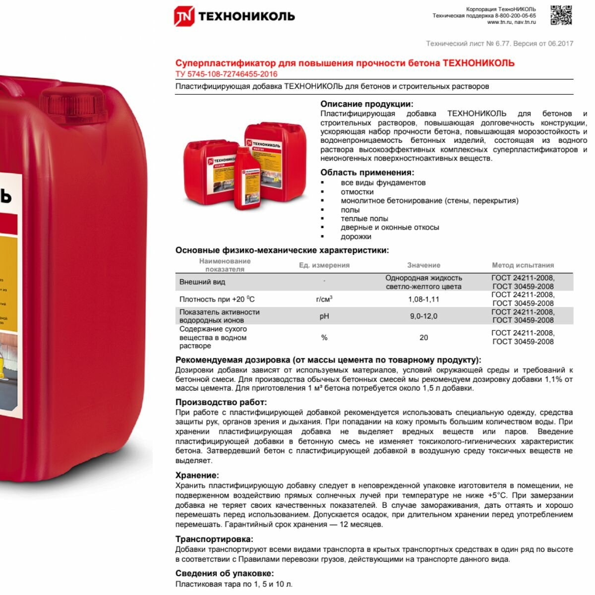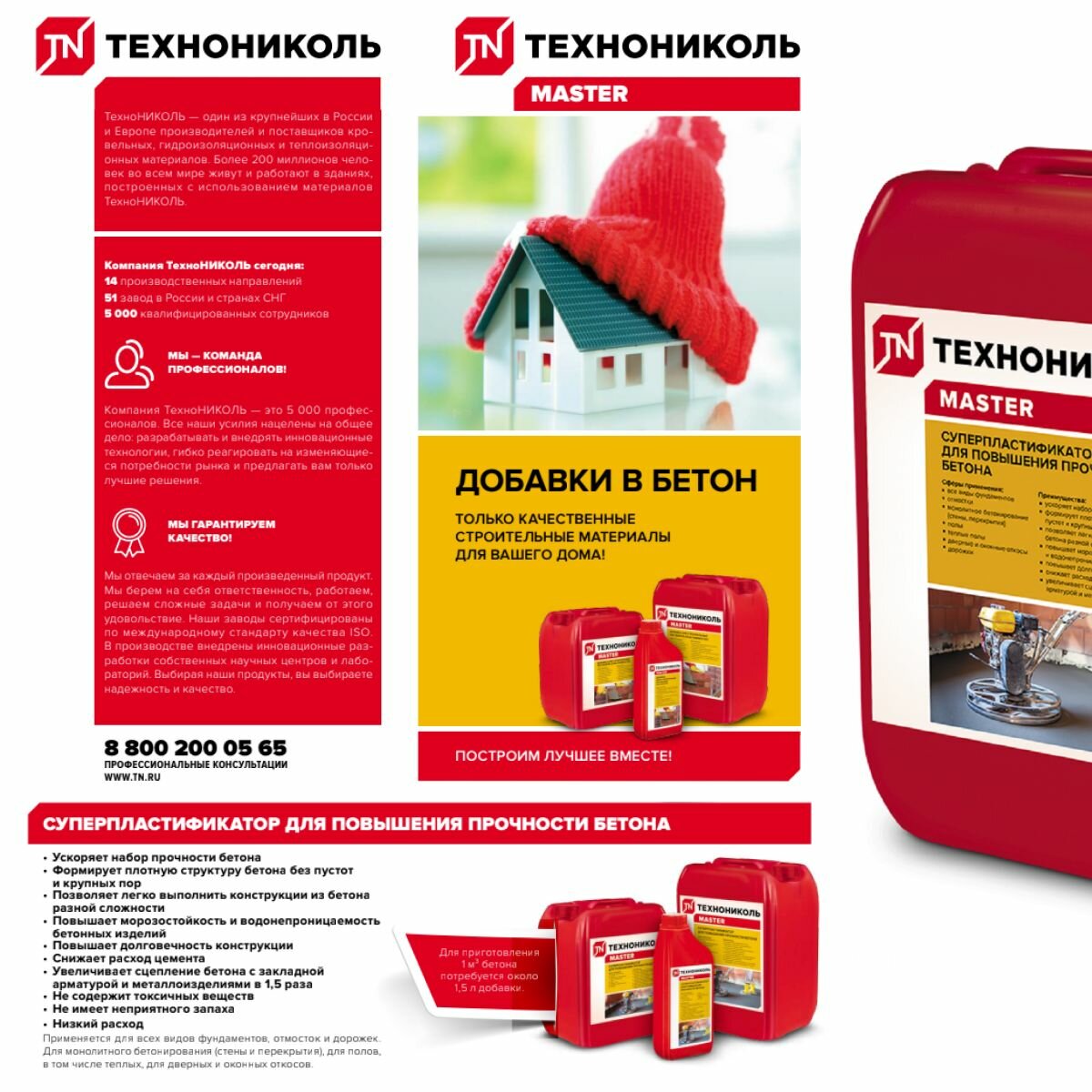 Суперпластификатор для повышения прочности бетона технониколь, 5л