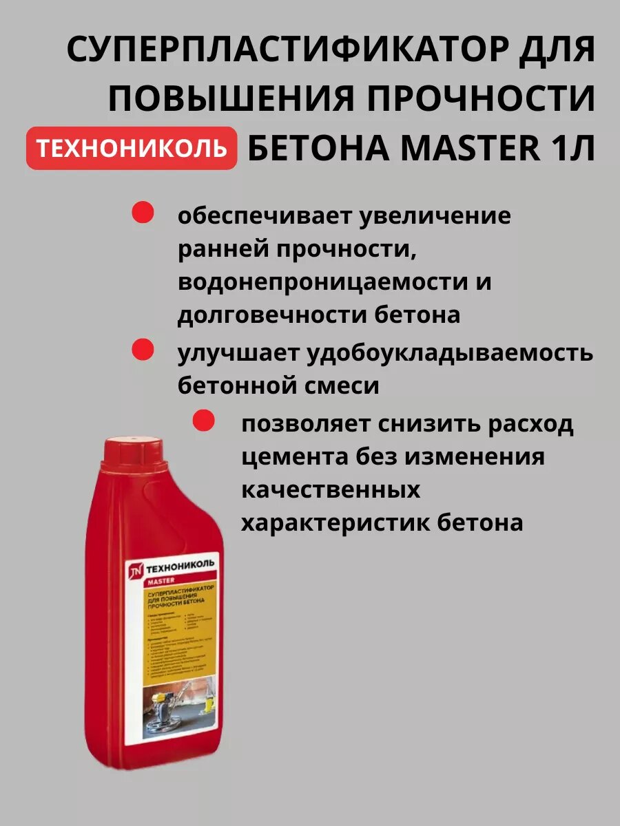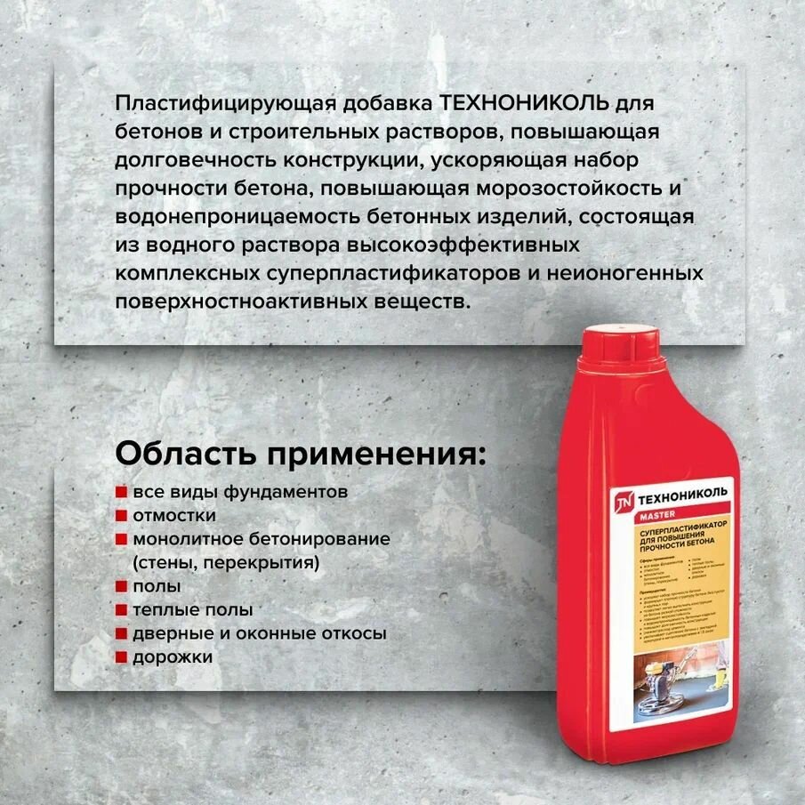 Суперпластификатор для повышения прочности бетона Технониколь, 1 л интересное:
