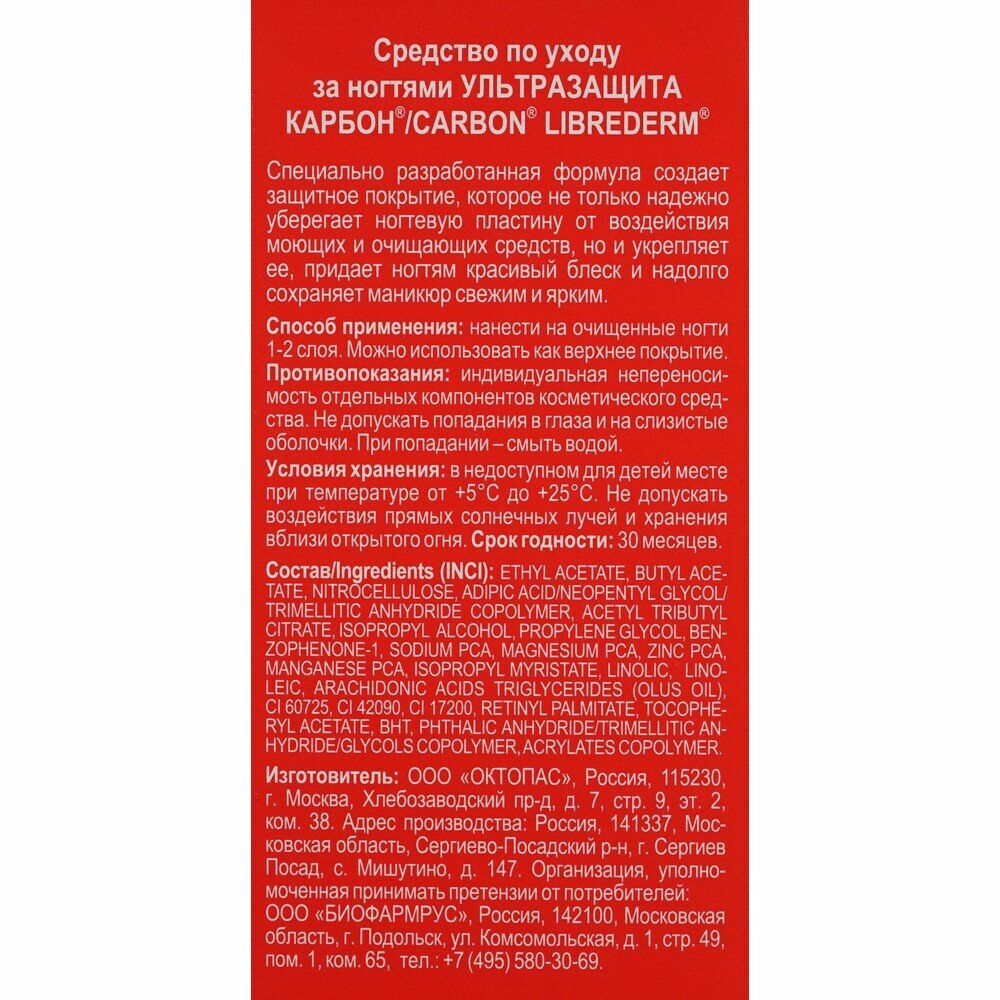 Лак для ногтей Ультразащита Карбон, 10 мл, Librederm