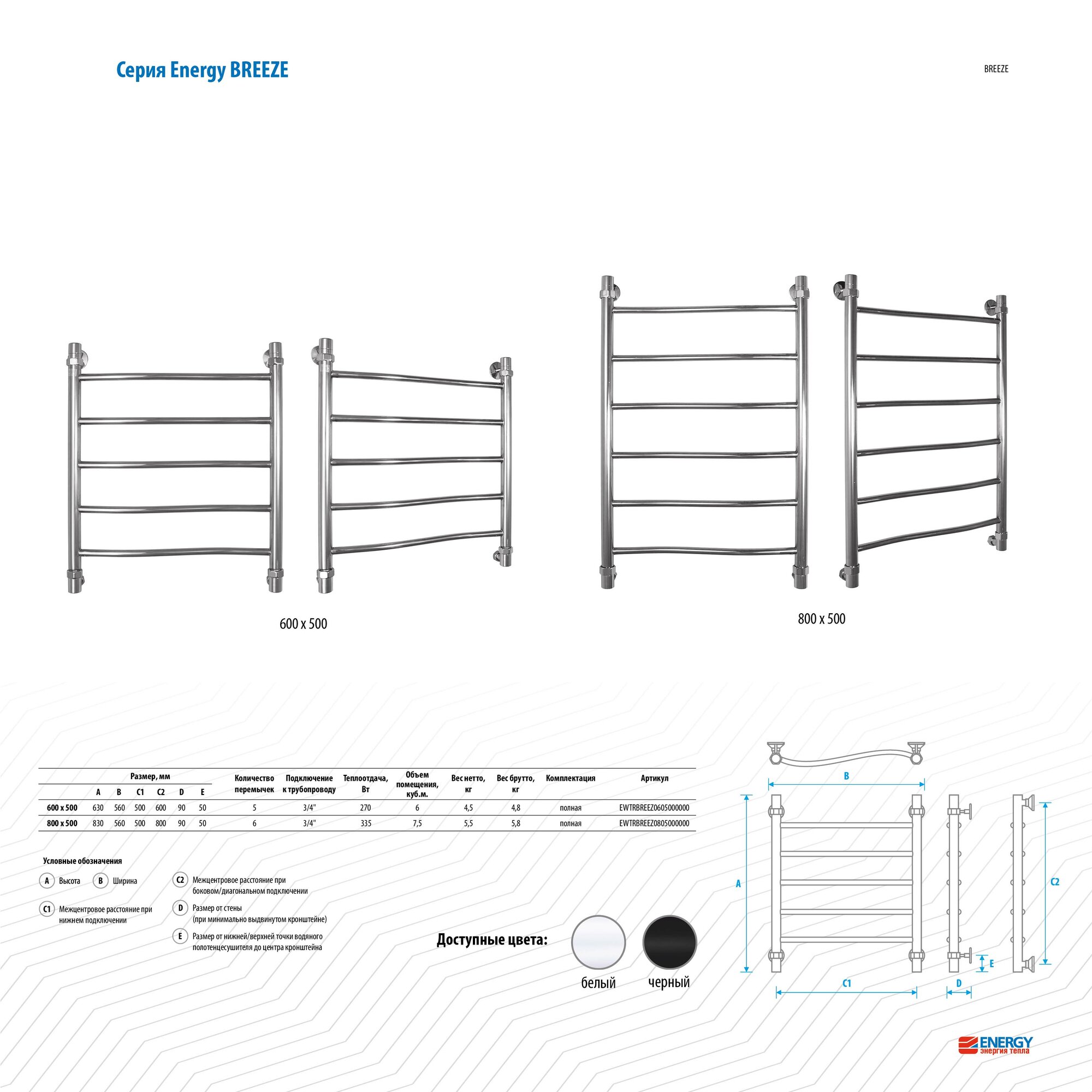 Водяной полотенцесушитель Energy Breeze Prestige 800x500 цвет хром