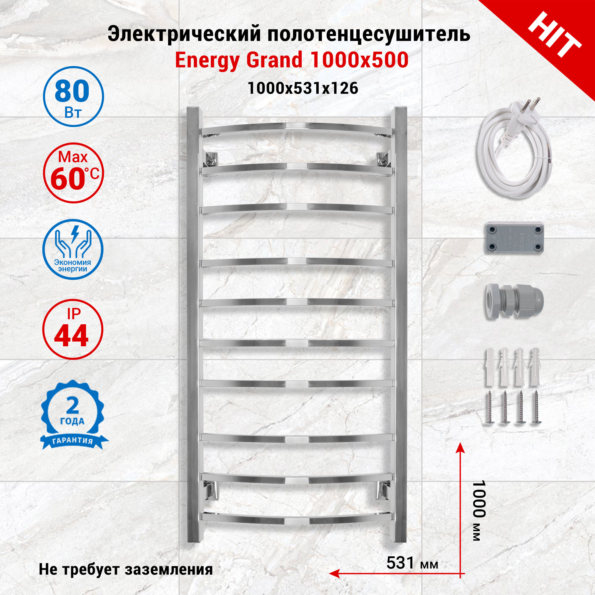 Электрический полотенцесушитель Energy Grand 1000x500