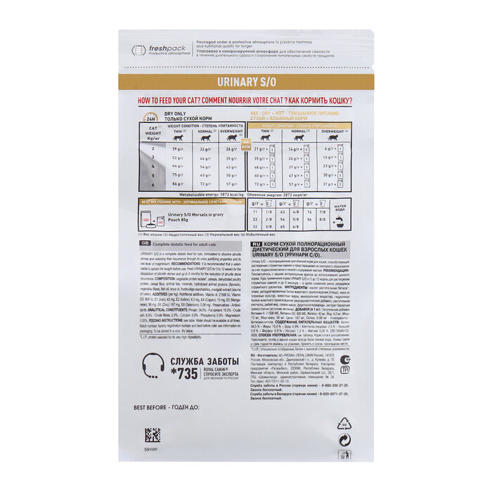 СохранитьКорм Royal Canin Urinary S/O для кошек при МКБ, 350 г интересное: