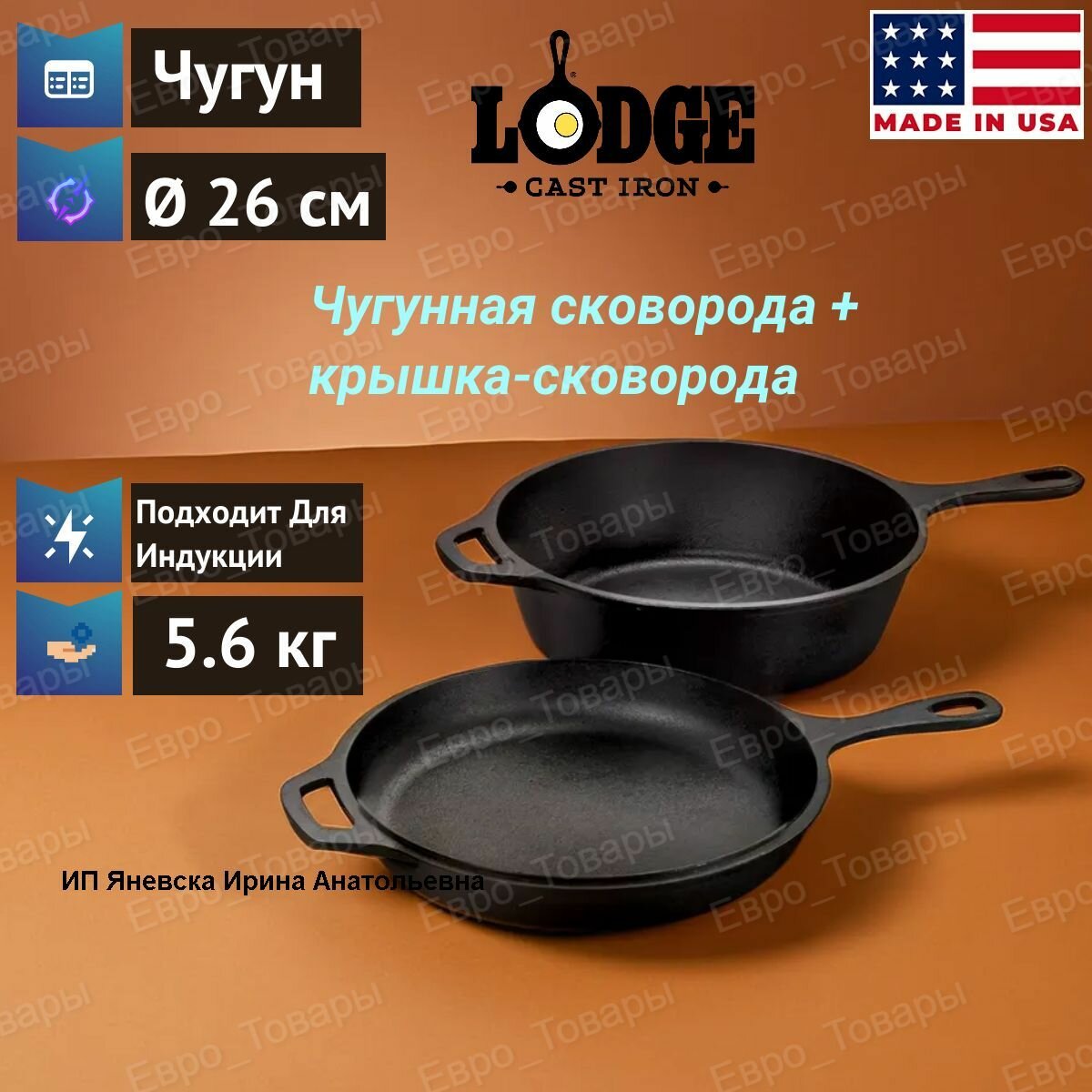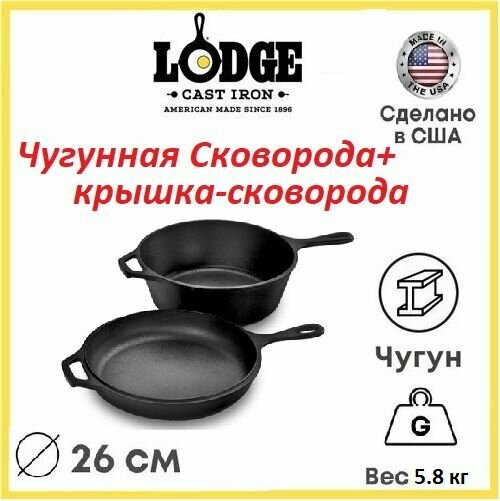 Сковорода чугунная диаметр 26 см, объем: 2,84 л + крышка, LCC3, LODGE, США интересное: