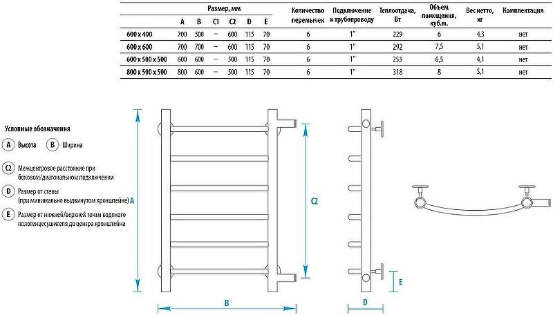 Полотенцесушитель водяной 600x400 Energy Step EWTR0STEP0604000000