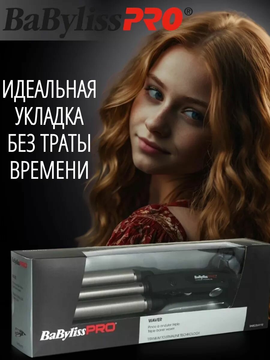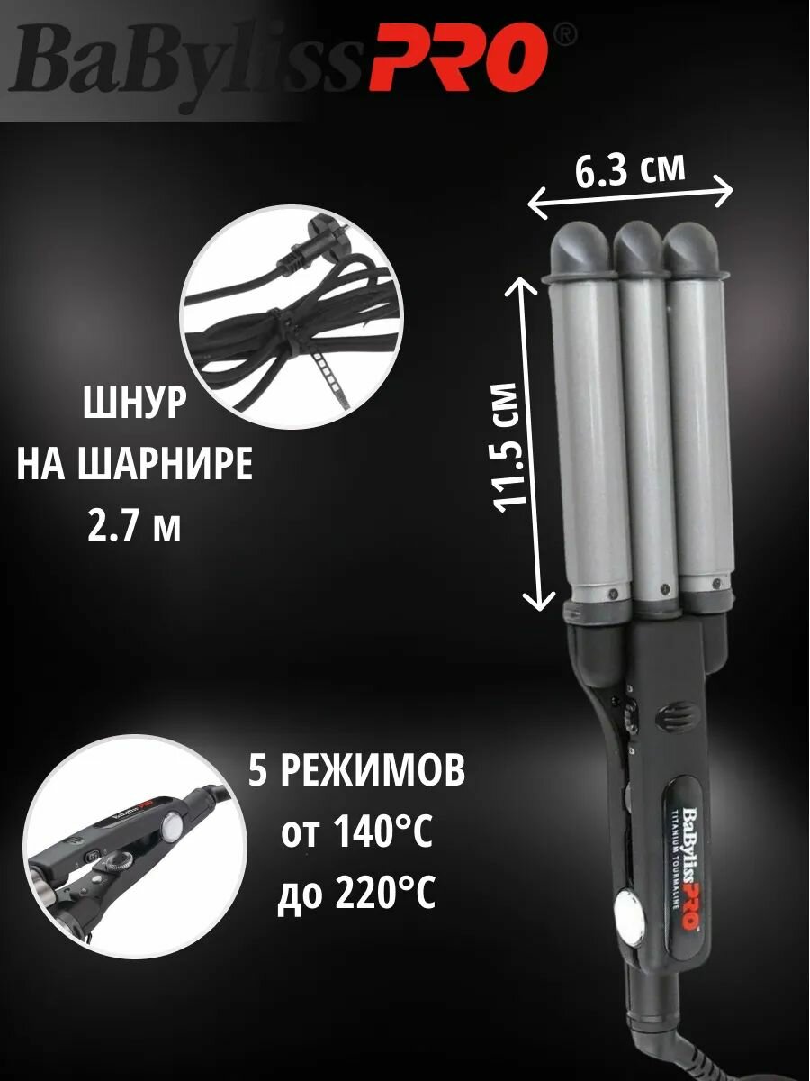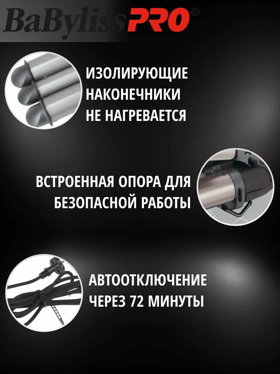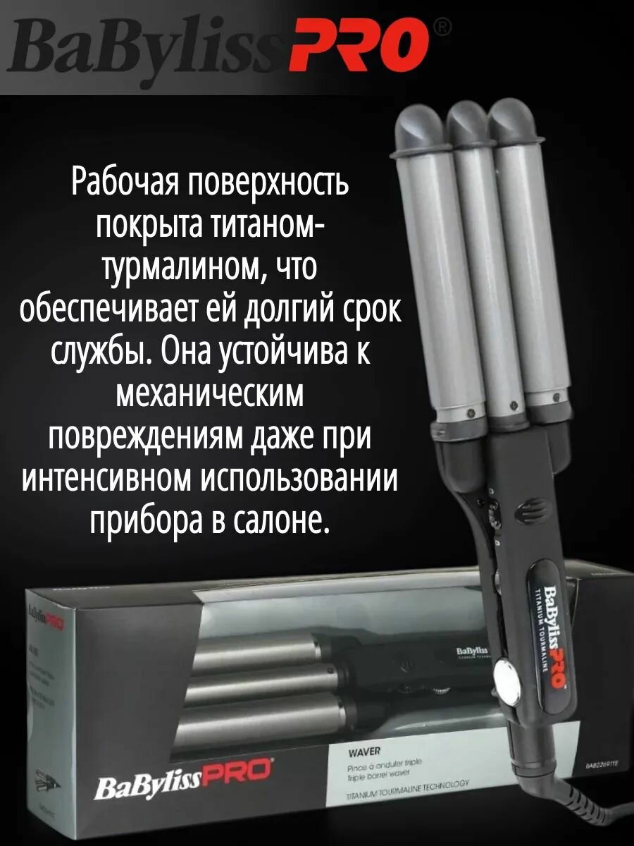 Плойка тройная Babyliss Pro титан + турмалин (22, 19, 22 мм) для создания волн