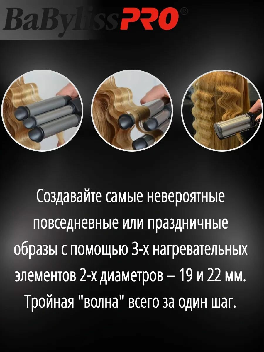 Щипцы тройные BaByliss Pro Triple Barrel Waver 22/19/22 мм, 125 Вт Bab2269tte .
