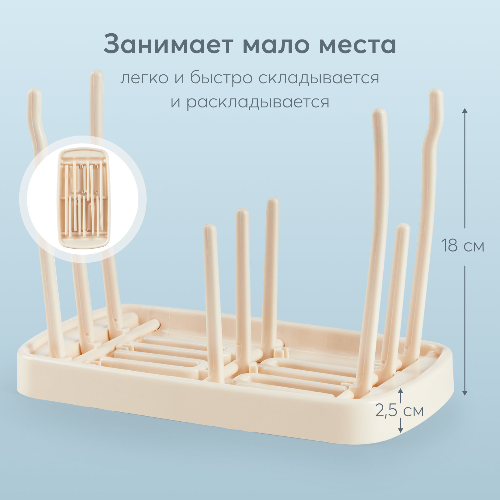 Сохранить33010, Сушилка для бутылочек и сосок Happy Baby, подставка для посуды настольная, складная, компактная, кремовая интересное: