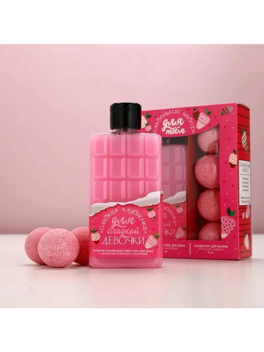 Подарочный набор женский Для тебя, гель для душа во флаконе шоколад и бомбочки для ванны, 4 шт интересное: