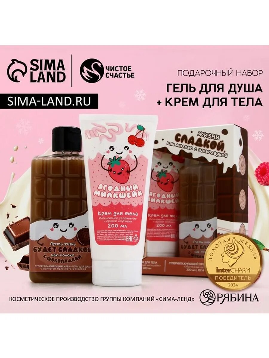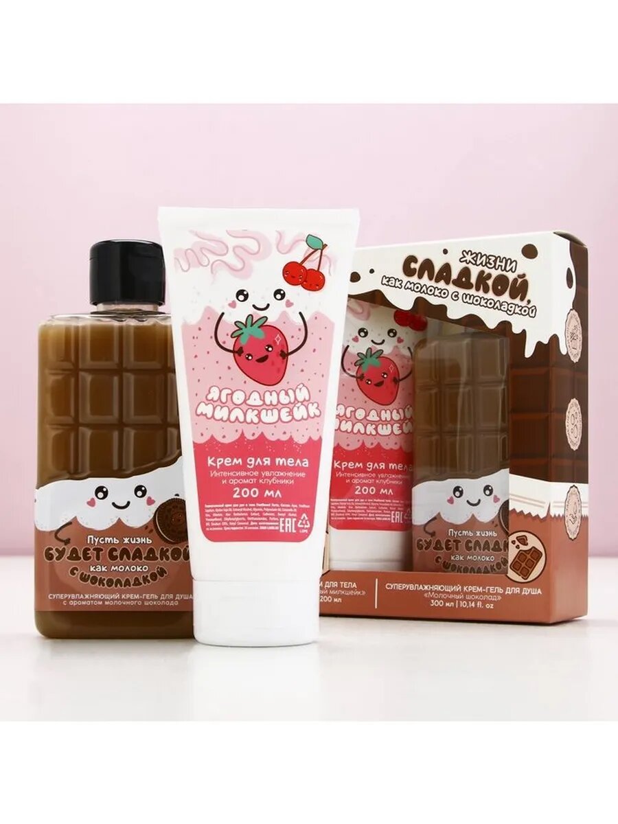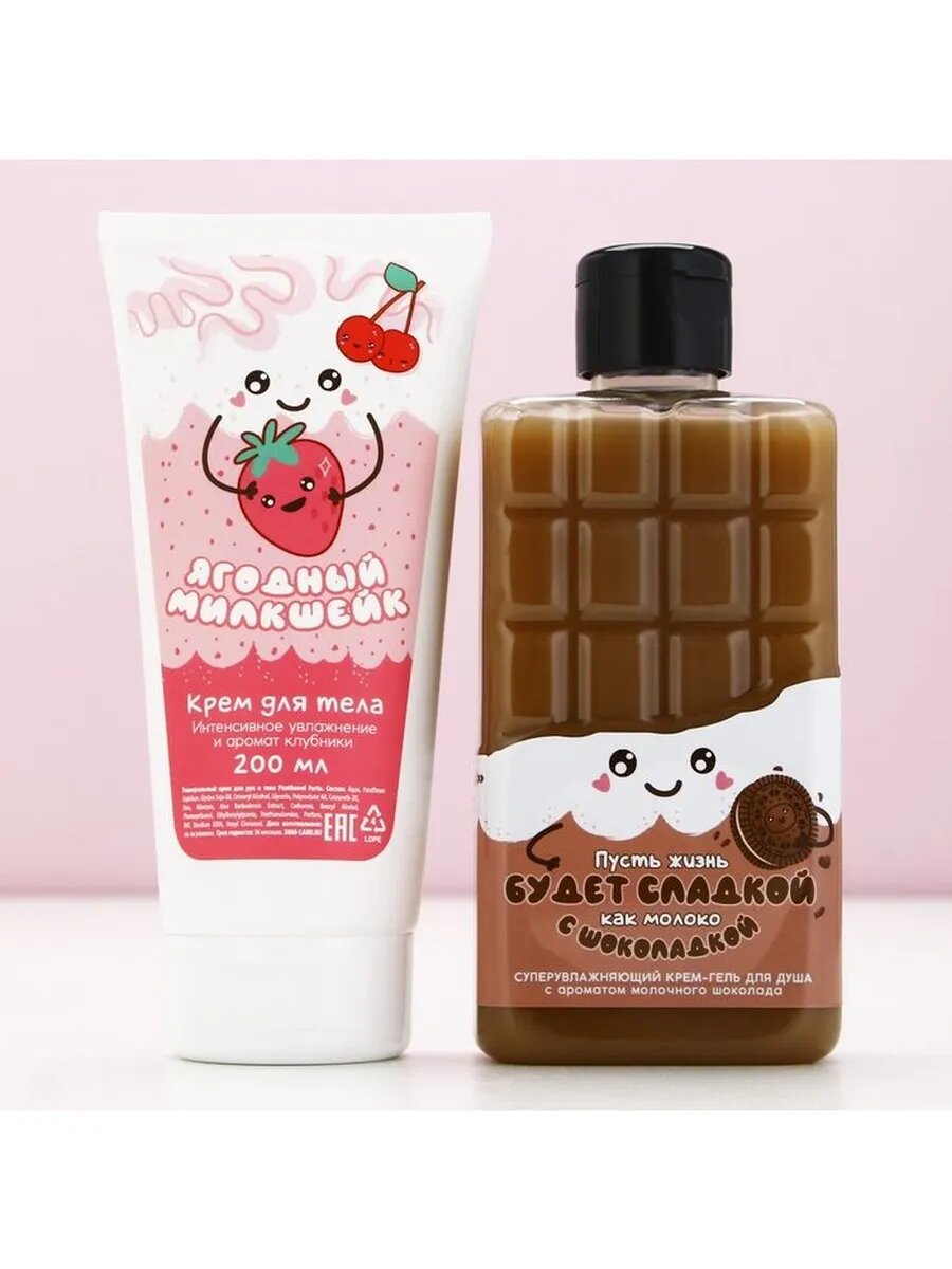 Подарочный набор косметики «Пусть жизнь будет сладкой!», гель для душа и крем для тела, чистое счастье
