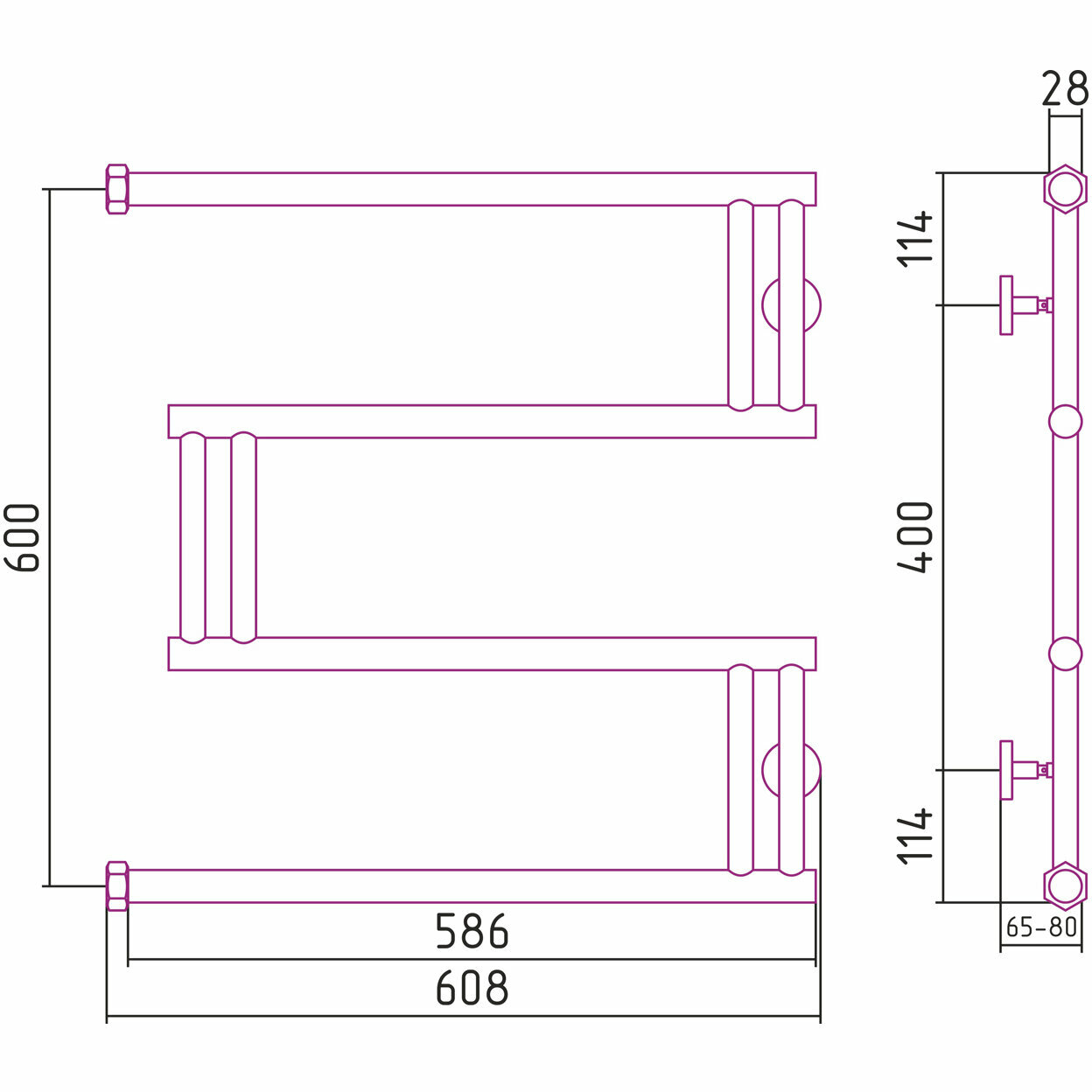 Полотенцесушитель водяной 600x600 Сунержа High-Tech model "M" 00-0050-6060