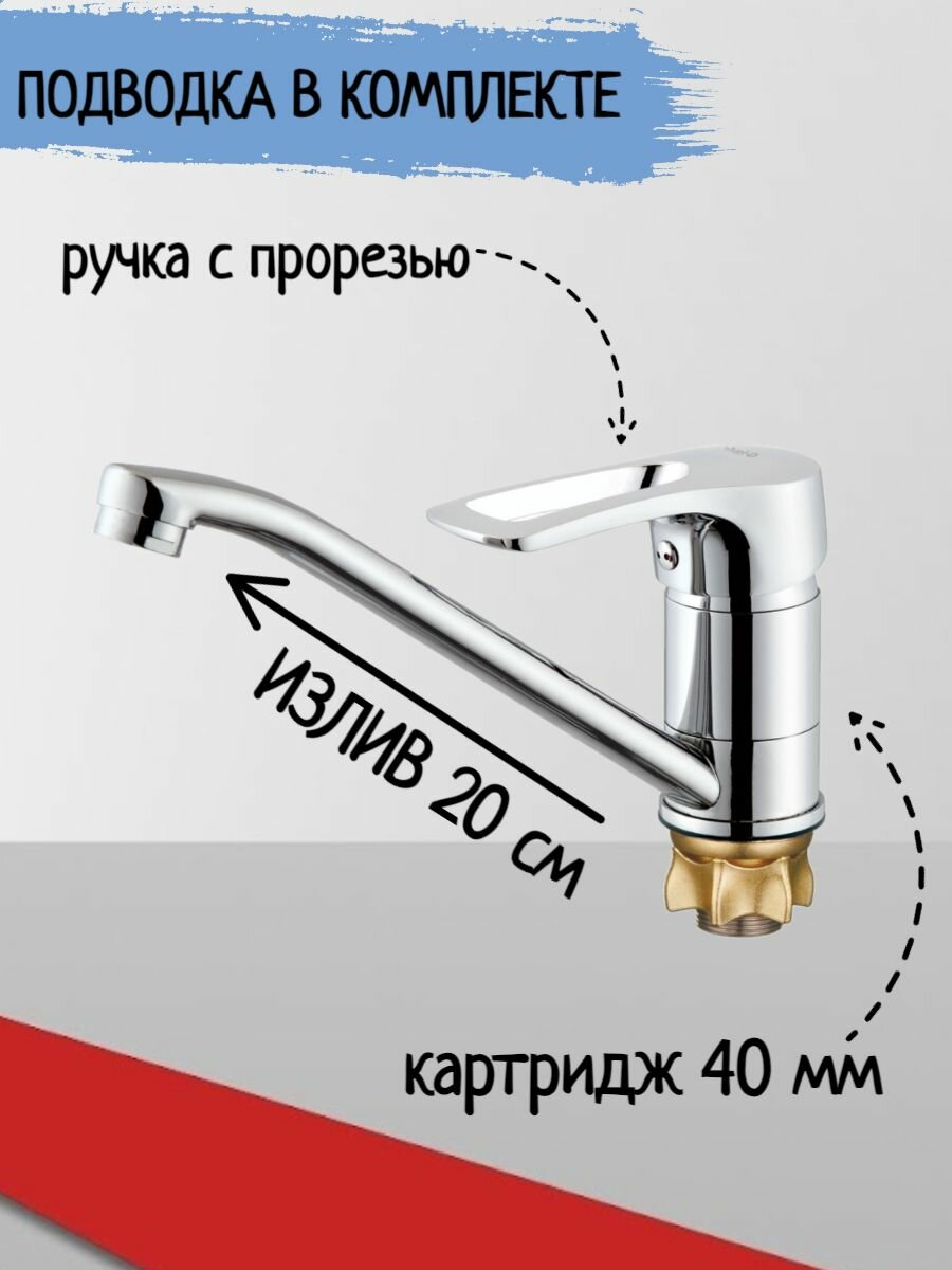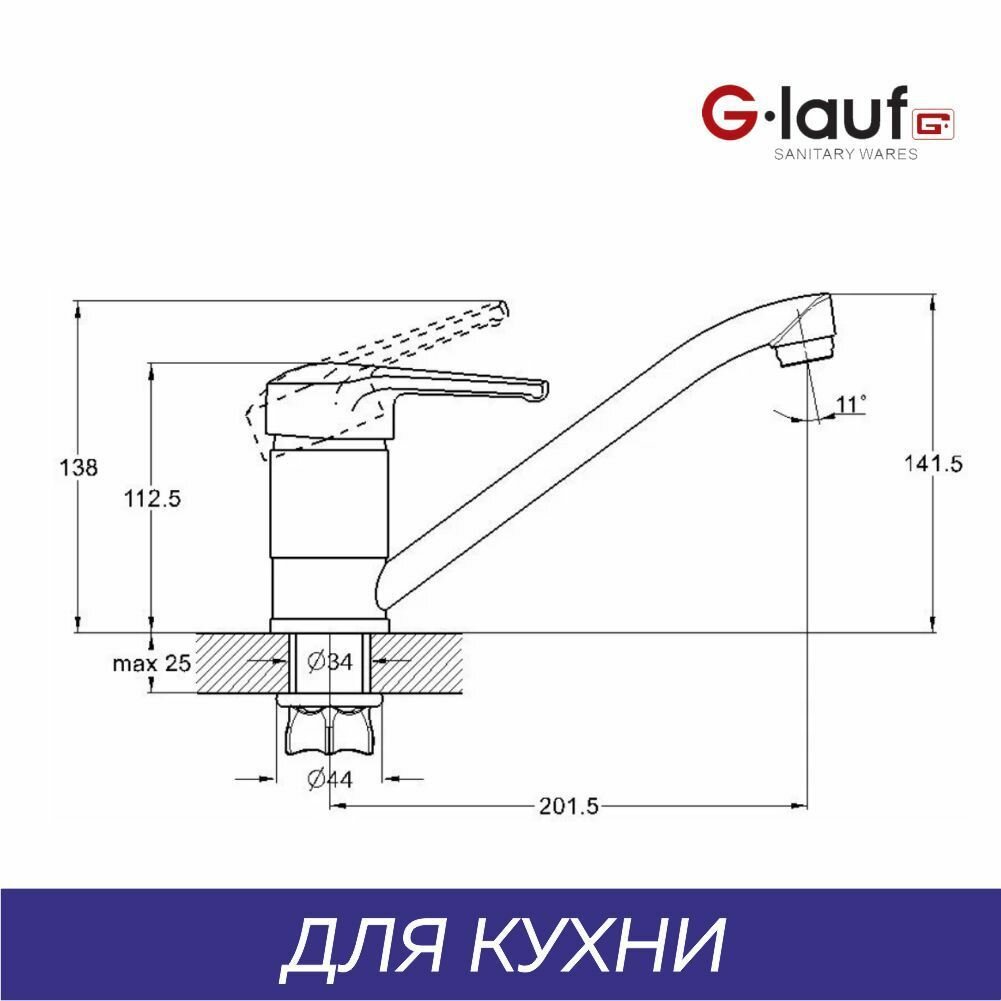 Смеситель для кухни 40к Glauf 4G4-A181 ЛАТ п/гайку