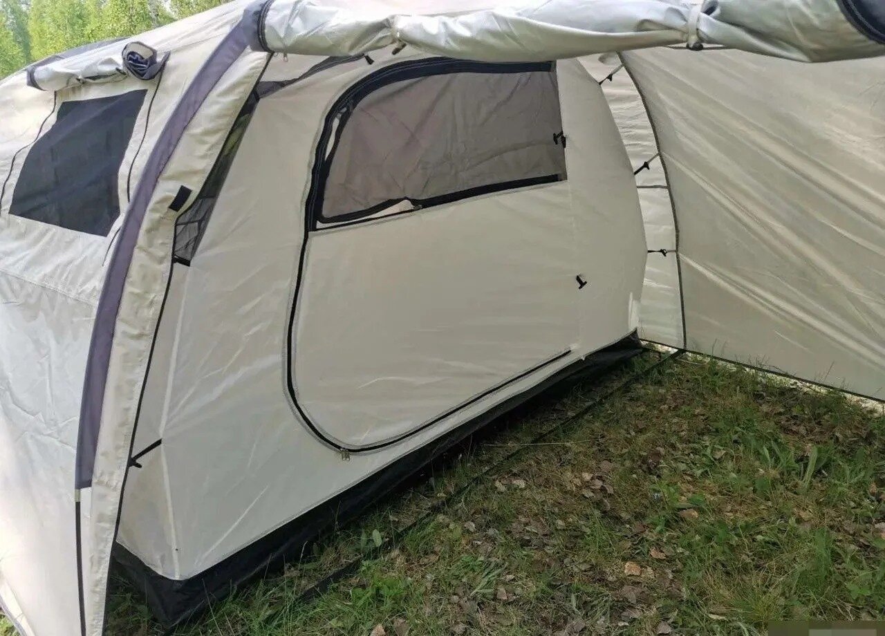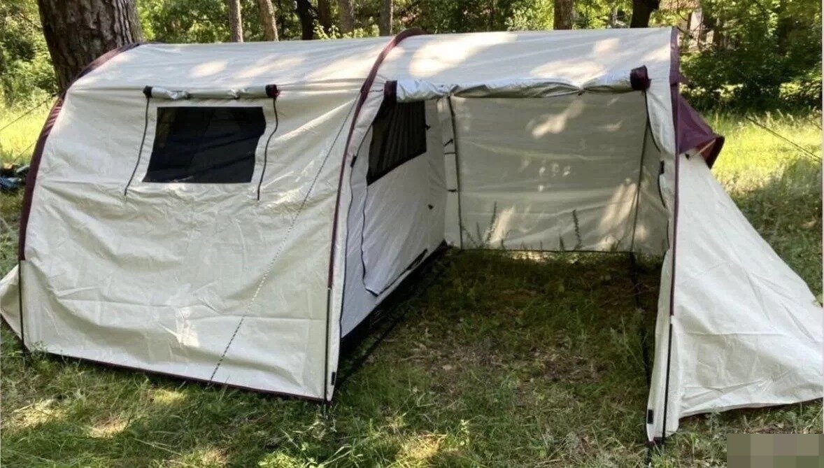 В тамбуре нет пола, поэтому так же приобрели дополнительный тент вместо него. Лучше аккуратнее относится к молниям и липучкам на окнах/дверях, хлипкие. |