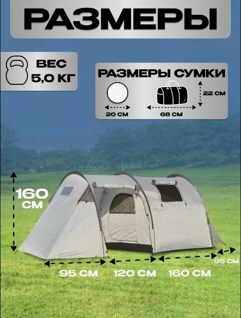 СохранитьПалатка туристическая 4 местная с тамбуром Lanyu -1909, серый интересное: