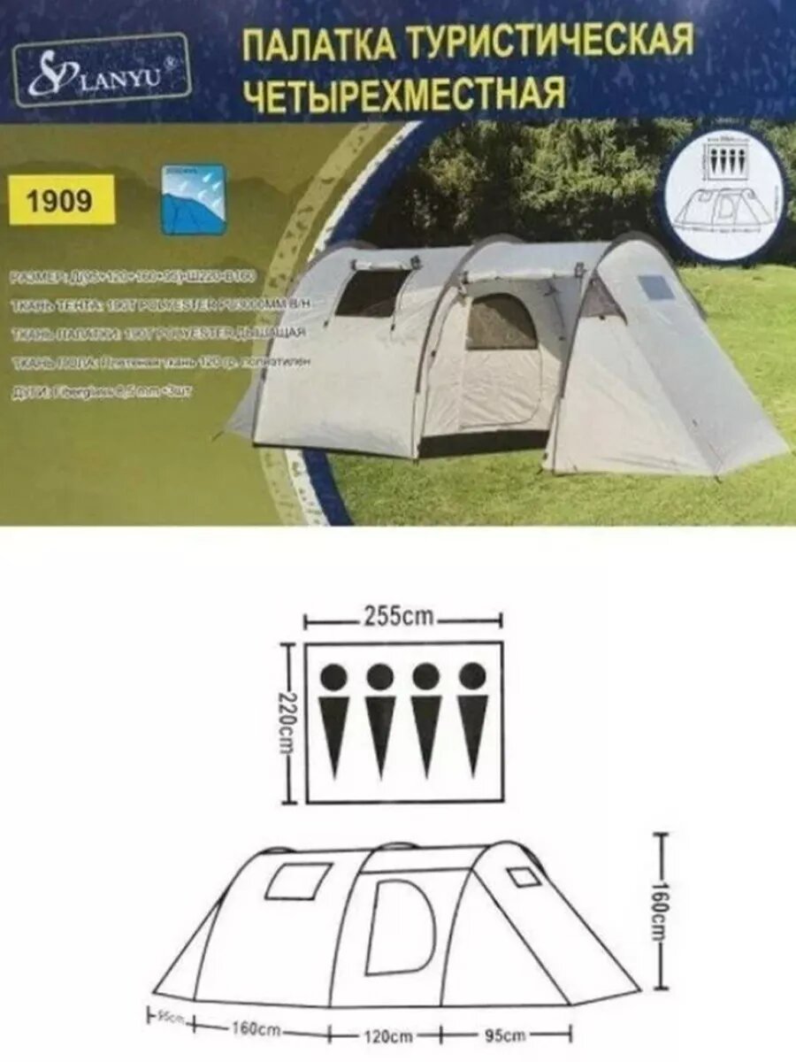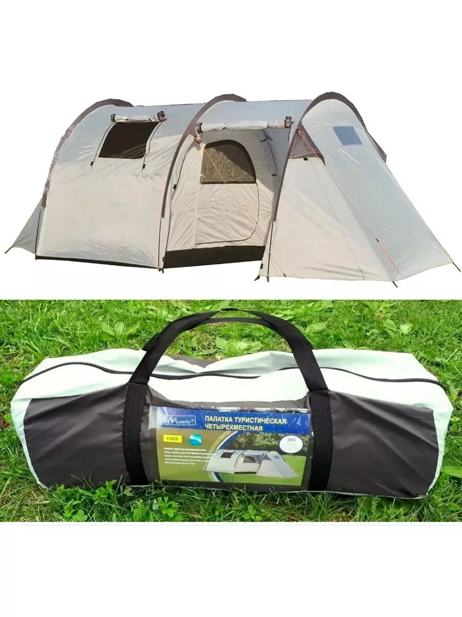 Купить Палатка туристическая 4 местная с тамбуром Lanyu -1909, серый