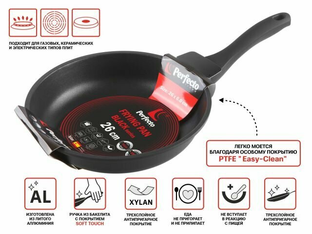 Сковорода алюминиевая 26 см, с антипригарным покрытием, серия Black, PERFECTO LINEA (55-260013) интересное: