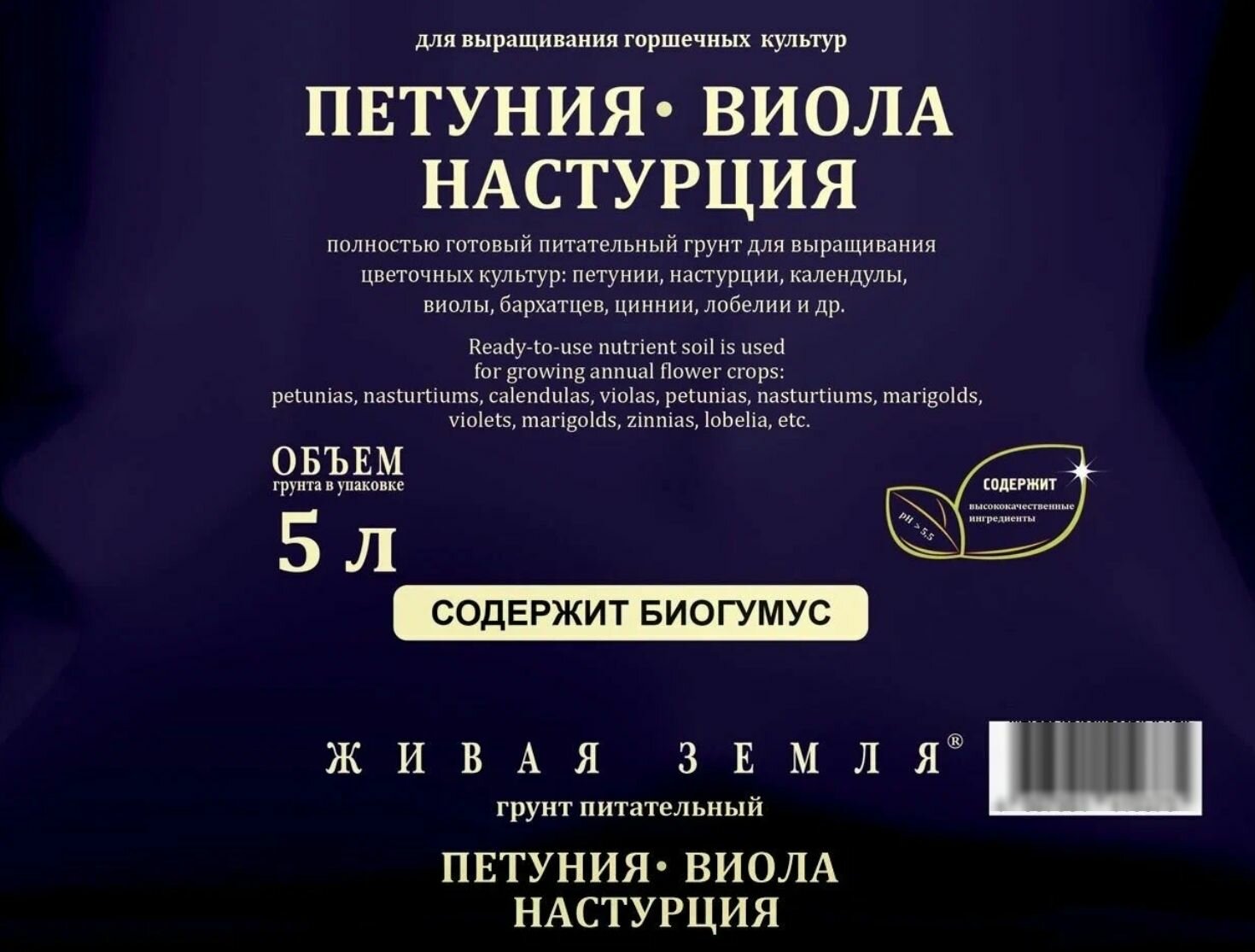 Для Петуний, Виол, Настурции грунт 5л Живая Земля