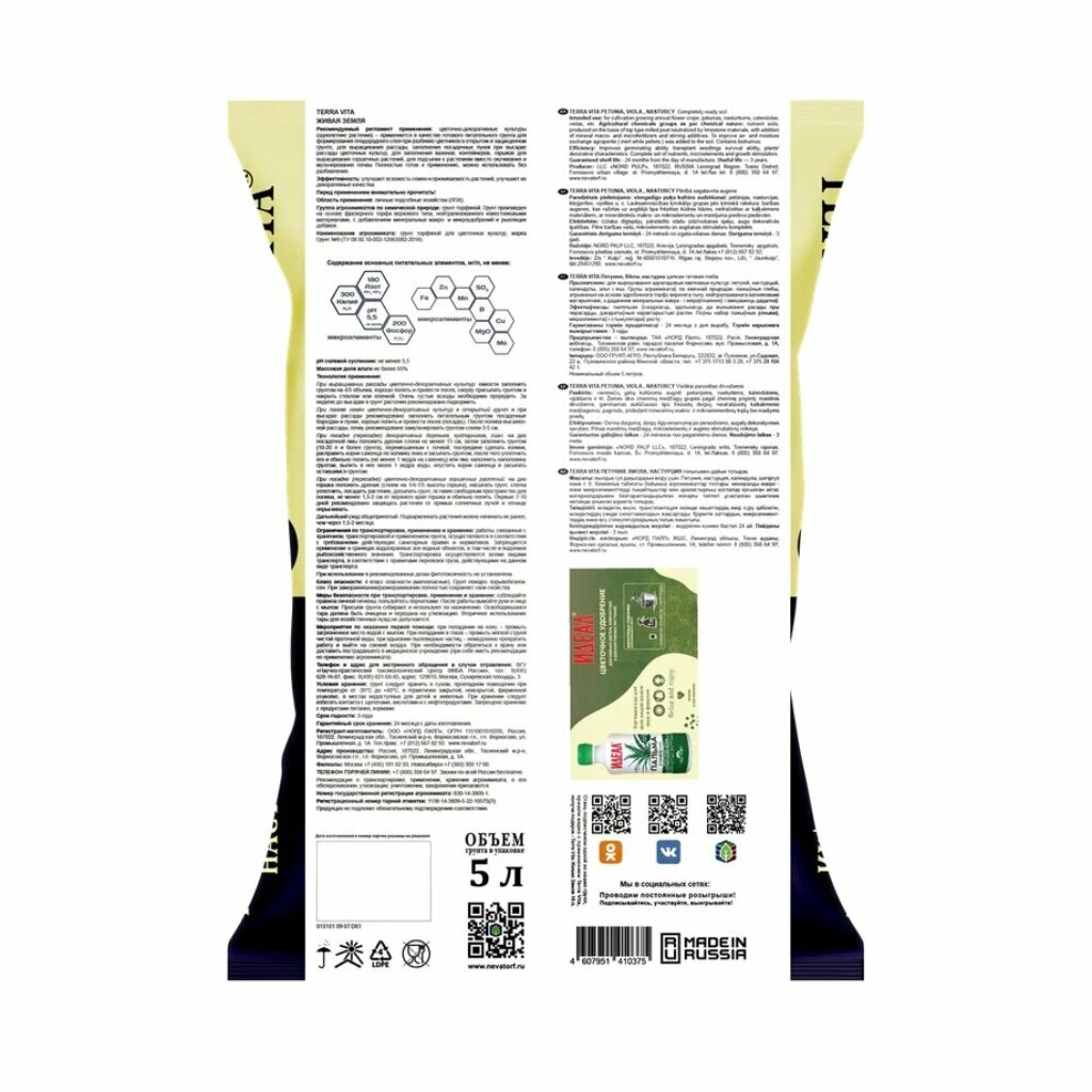Грунт для петуний-виолы-настурции 5л Живая Земля 5/385 Неваторф