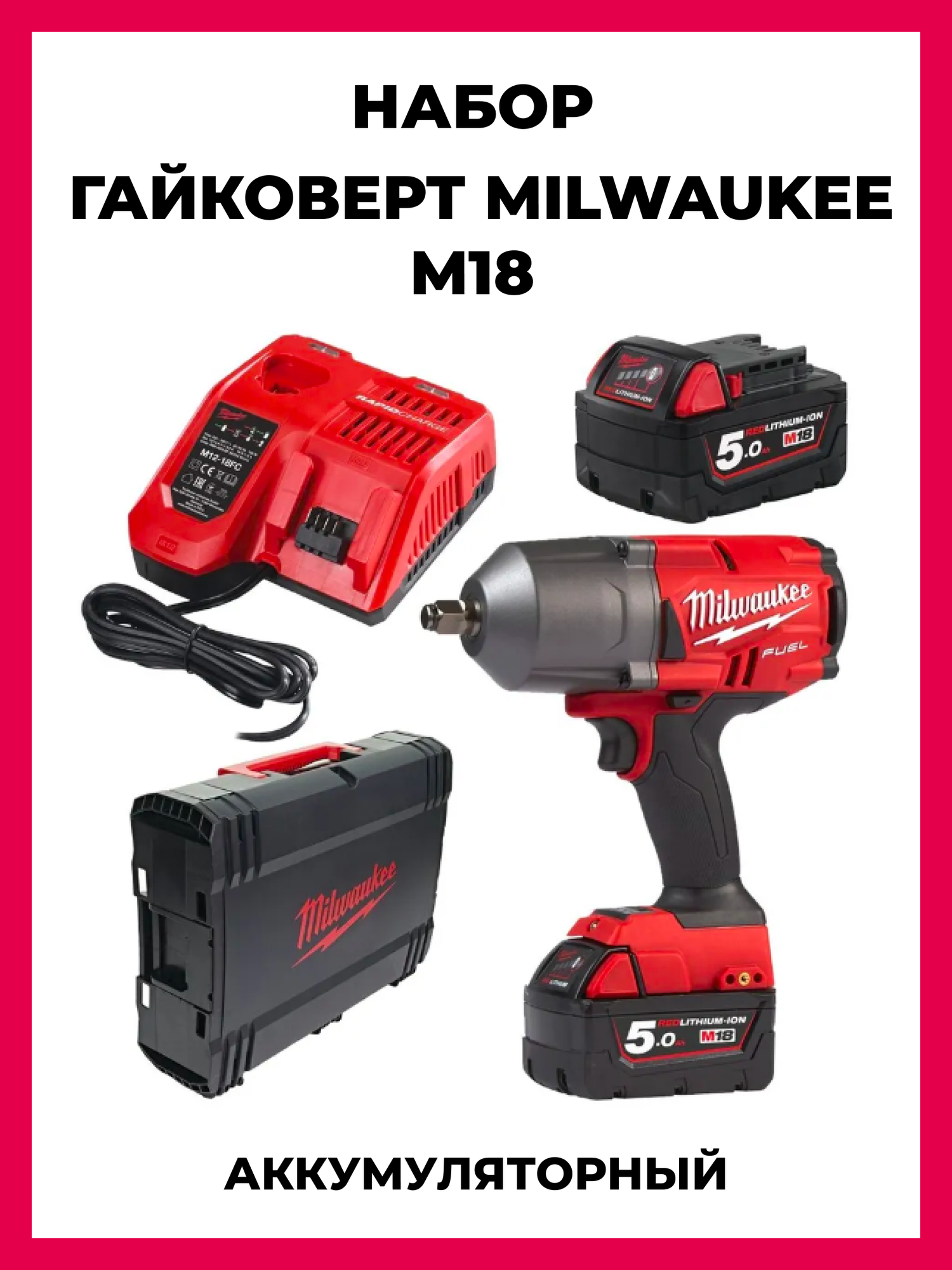 Аккумуляторный импульсный гайковерт Milwaukee, 1/2" M18 FHIWF12-0X, 4933459696, с АКБ 5 Ач и ЗУ, в кейсе