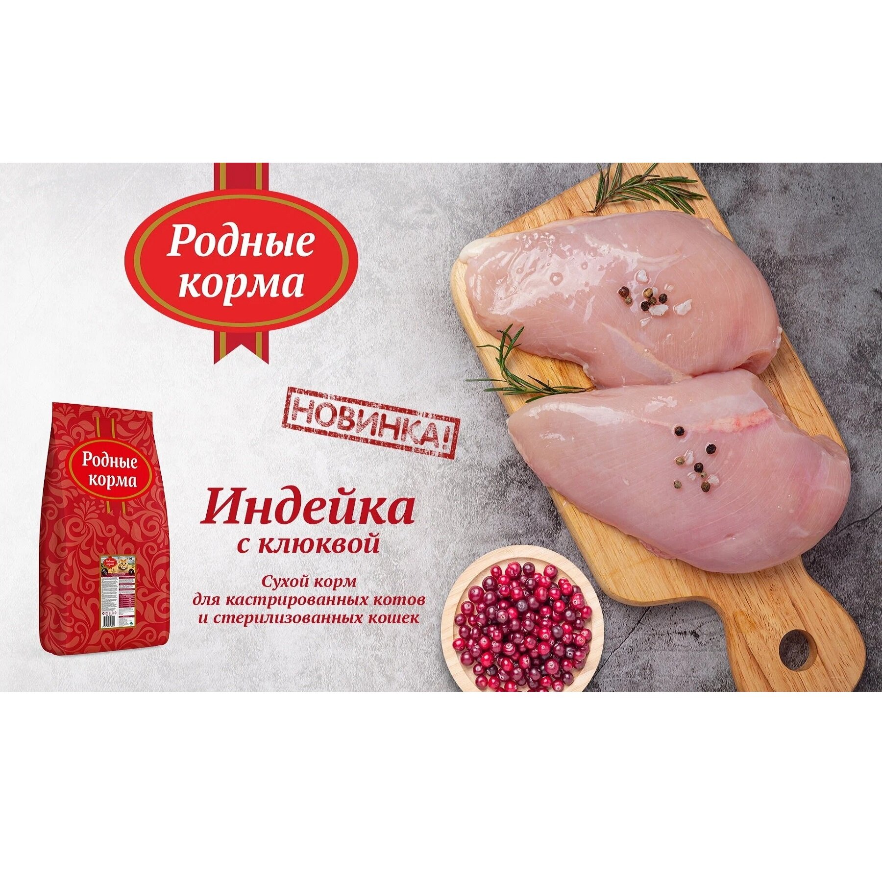 Родные корма для взрослых кастрированных котов и стерилизованных кошек с индейкой и клюквой 30/12NEW 10 кг