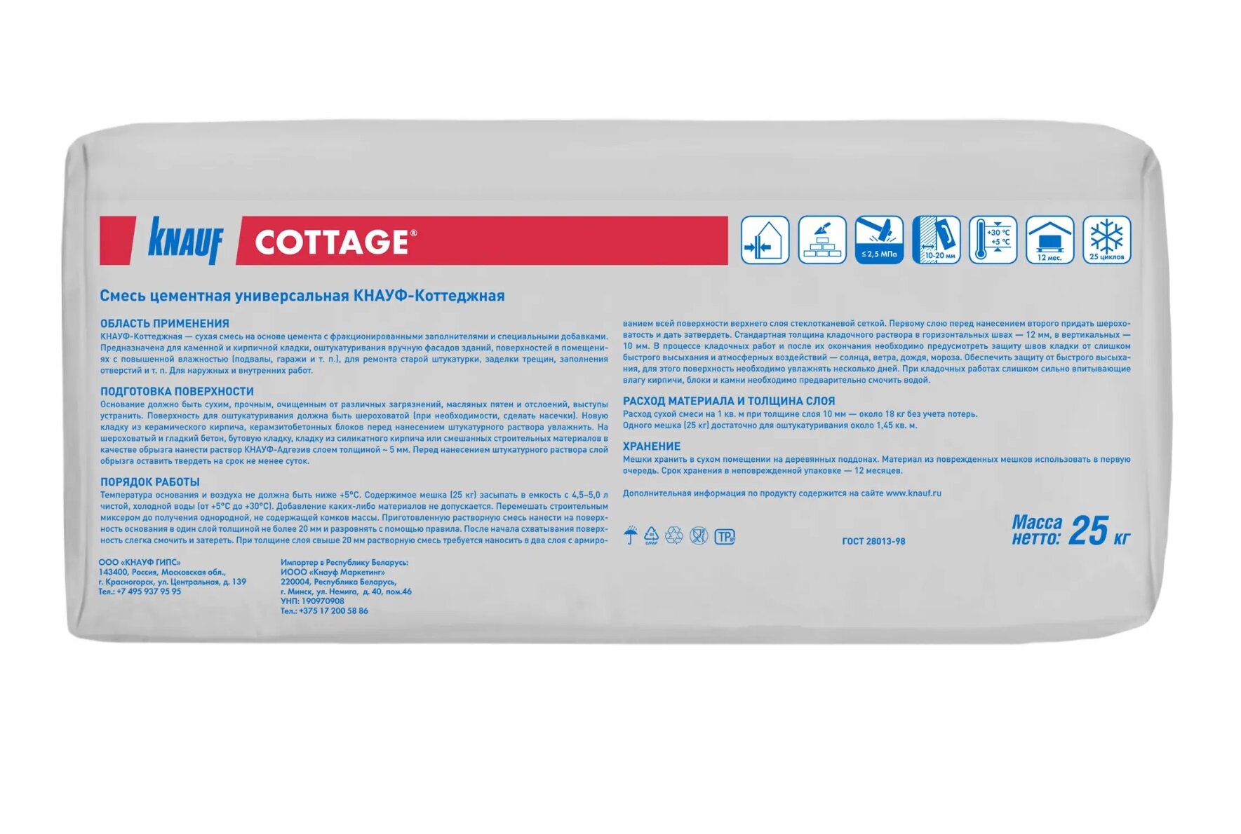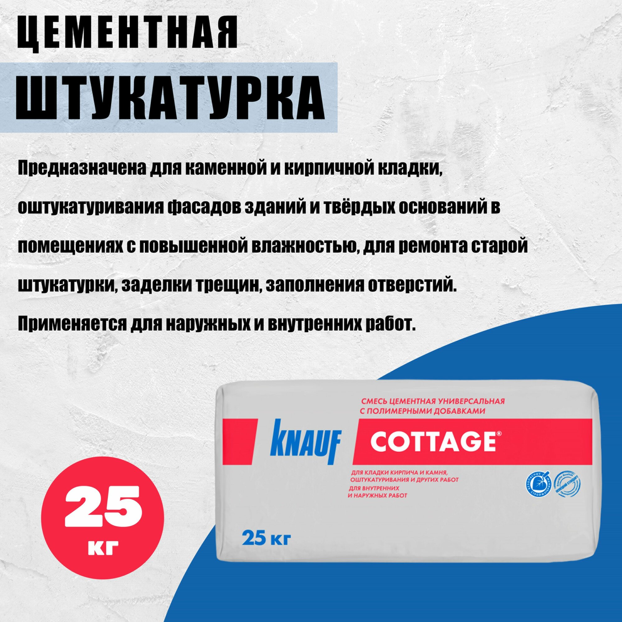 КНАУФ Коттедж смесь цементная универсальная (25кг) / KNAUF Cottage смесь цементная универсальная (25кг)