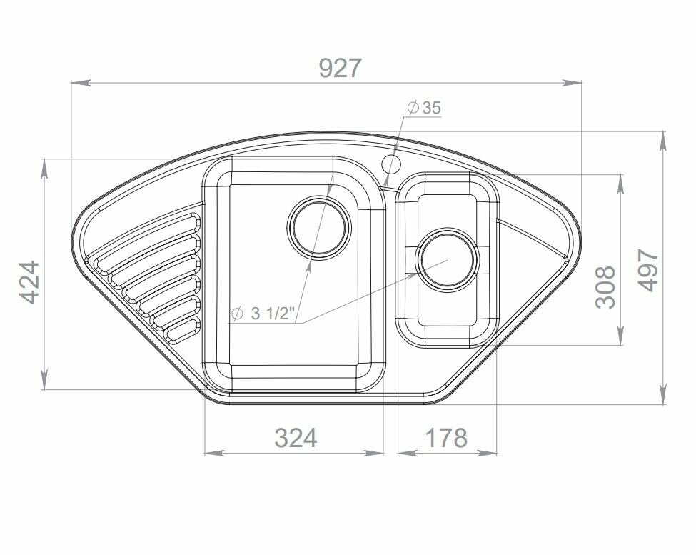 | Диаметр сливного отверстия | 3 1/2 " |