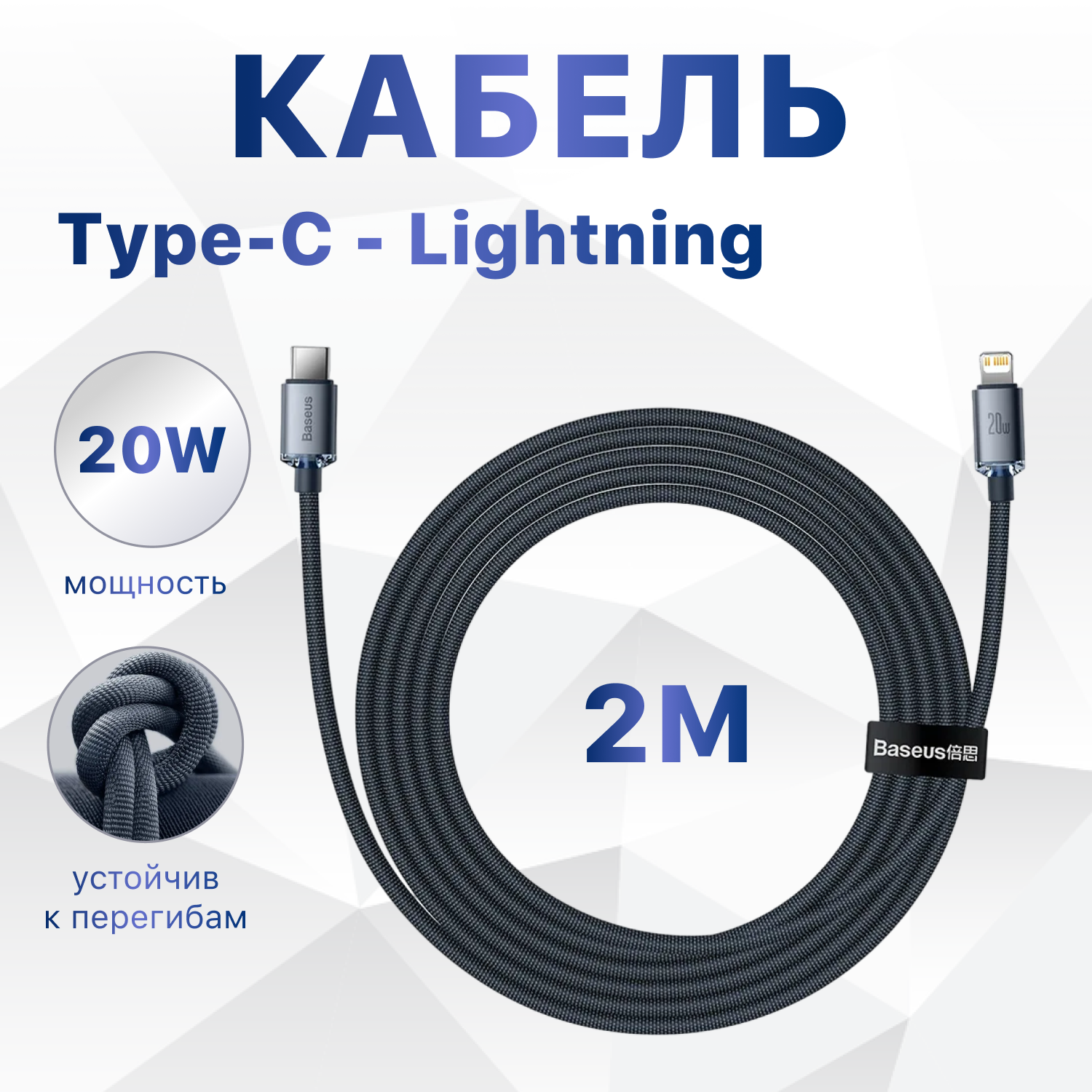 Кабель для айфона Baseus Crystal Shine Type-C - Lightning PD 20 Вт 2 метра (CAJY000301) - Черный