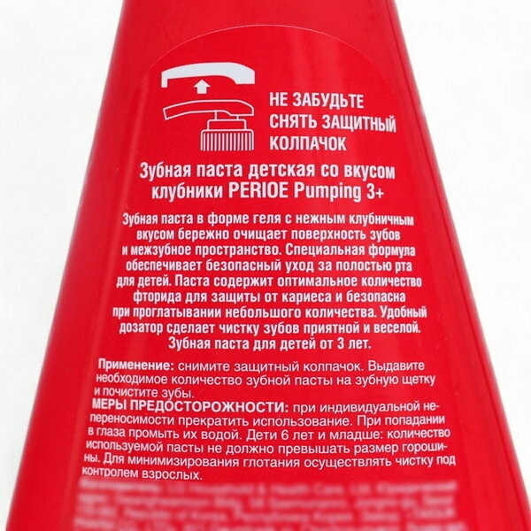 Зубная паста PERIOE детская со вкусом клубники Pumping 3+ лет, 285 г