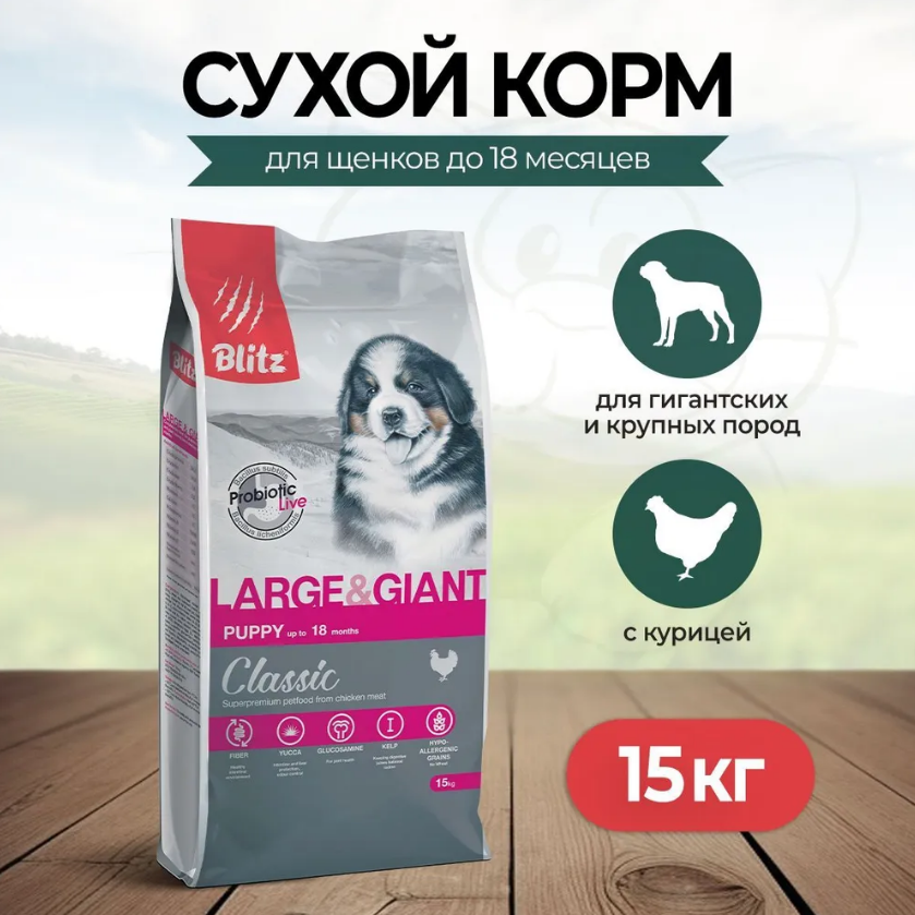 Купить Blitz Classic Puppy Large & Giant 15кг для щенков крупных и гигантских пород