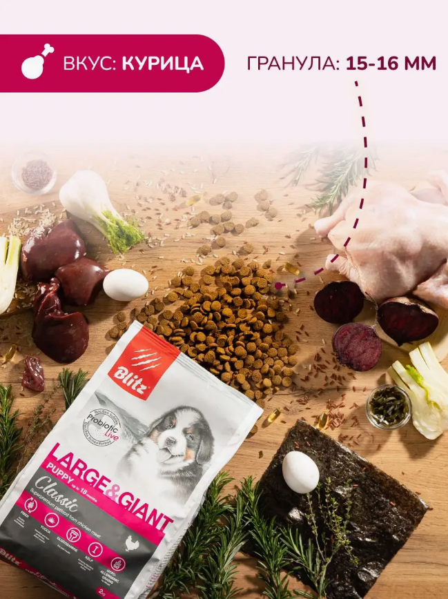Корм Blitz Classic Puppy Large & Giant для щенков крупных пород, 15 кг