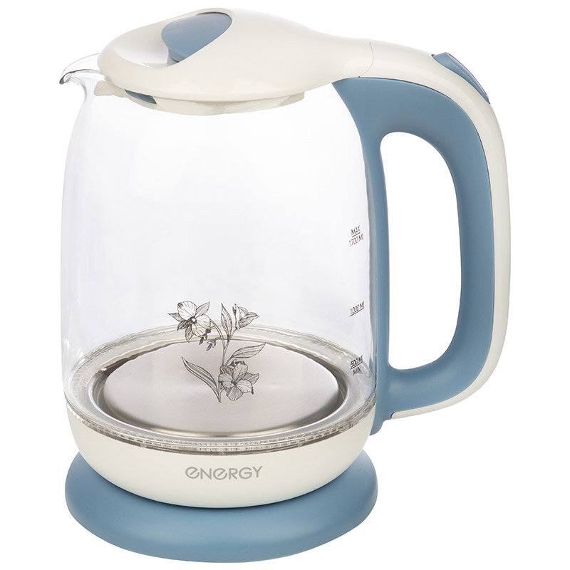 Чайник электрический Energy E-281 1,7 л, стекло, пластик, голубой
